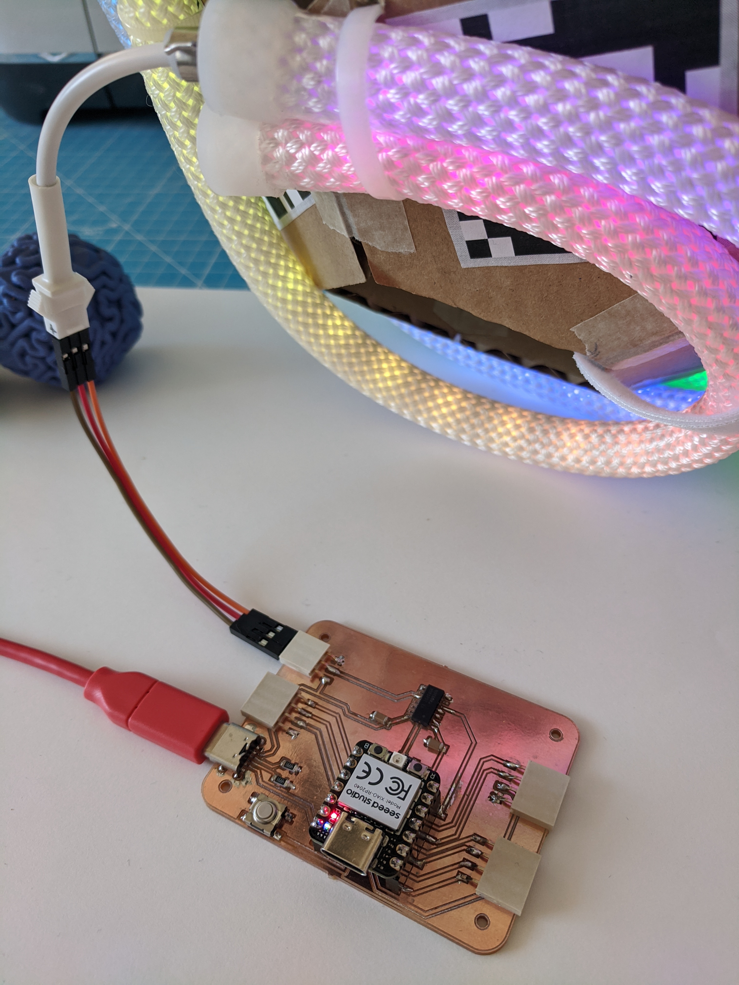 Can I make a path from a physics simulation, embed addressable LEDs into the path, and program a microcontroller to make interactive color animations on the object? Yes, I can do those things now.