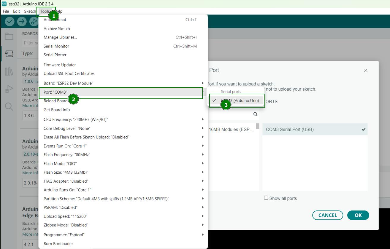 Next I connect my Arduino to my lapto using USB port. Following are the steps that I followed to add board and USB