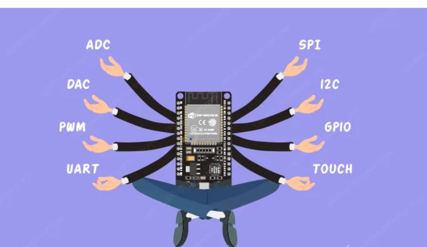 The ESP32 is a series of low-cost, low-power system-on-a-chip (SoC) microcontrollers with integrated Wi-Fi and Bluetooth capabilities. It is developed by Espressif Systems and is widely used in IoT (Internet of Things) applications due to its versatility, performance, and affordability. I refer this link to learn more about the esp32 pinouts. The image below shows the esp32 chip pinout.