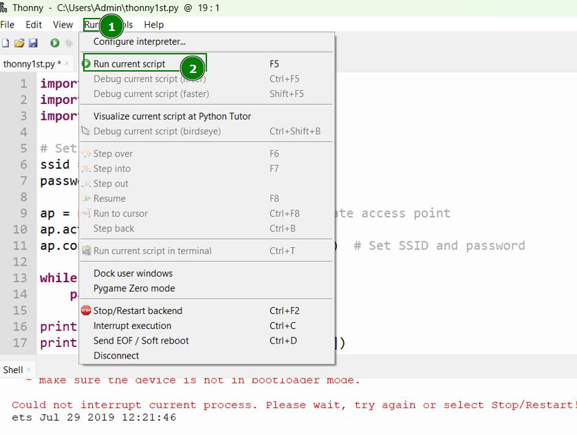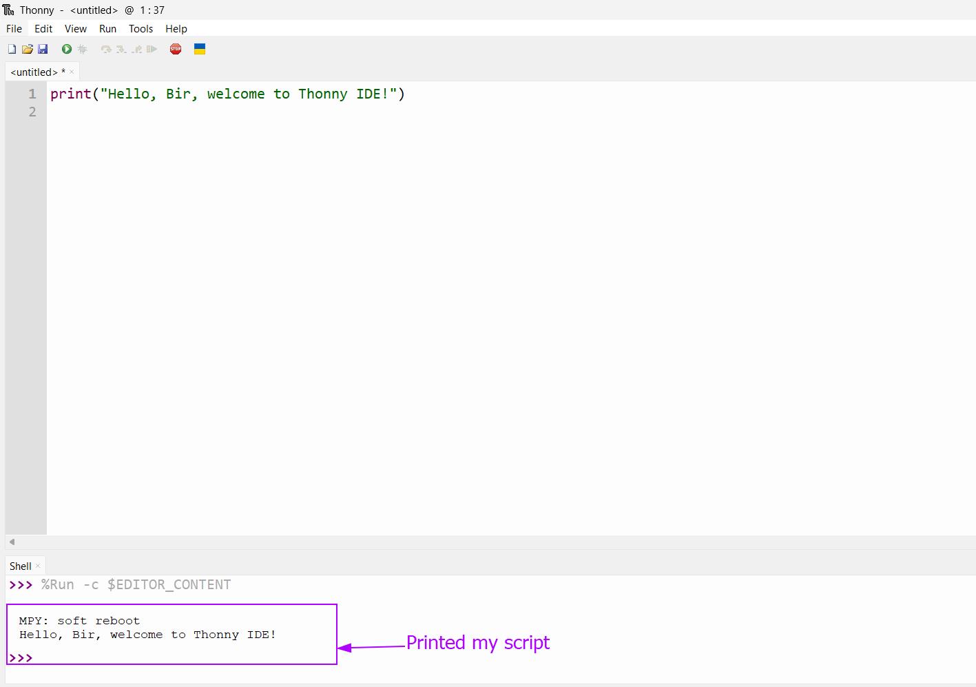 Next I went by running my script. I used the code by Nishan.Here I made some changes like changing the pins number.