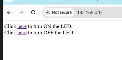 I copied the IP address 192.168.4.1 and pasted in the browser. The command LED on and off appears as shown in the image below.