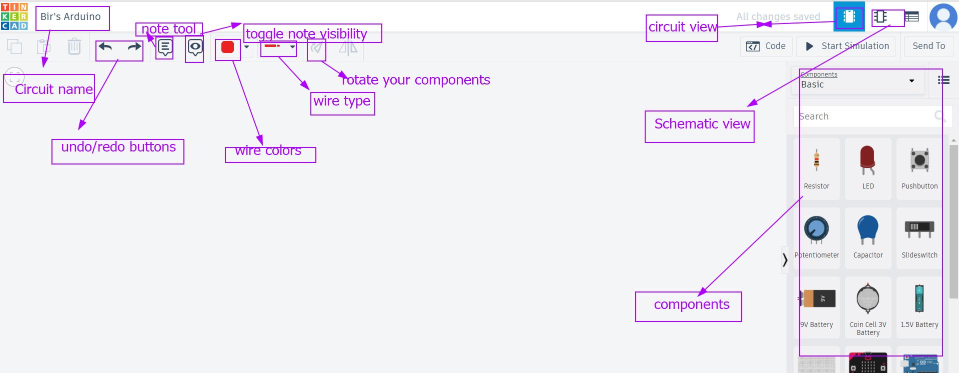 Go to Tinkercad account and create a new account if you dont have one.Once you login click on the circuts on the left side of the page and click on new circuits to start a new project. The second image below some of the interfaces you will use while doing your circuits project.