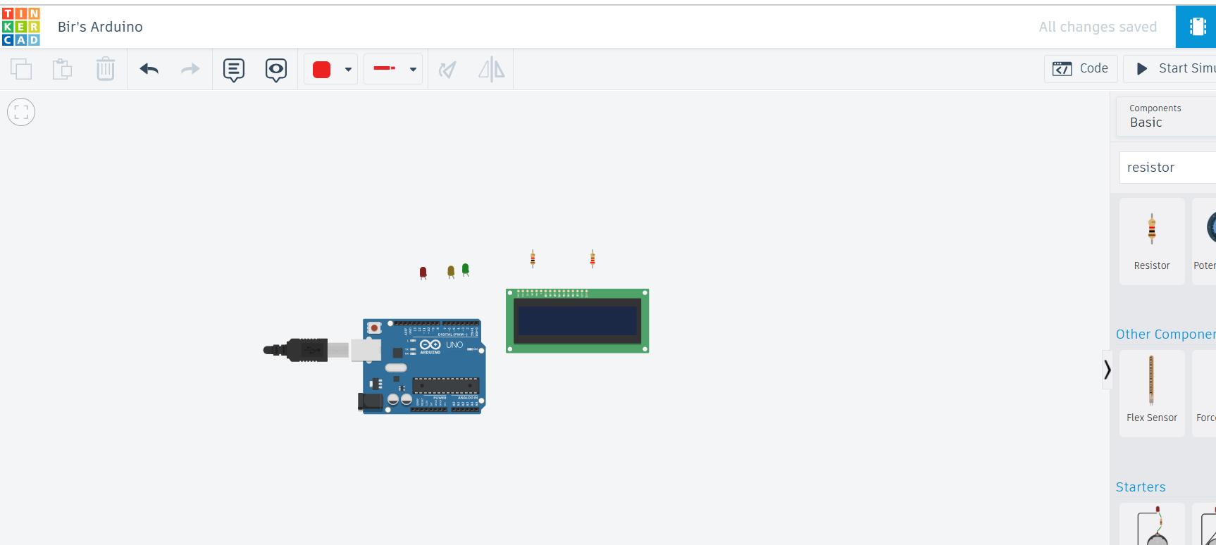 Next I went by adding all the components. You can changed the colors of led and resistor value by clicking on the components.