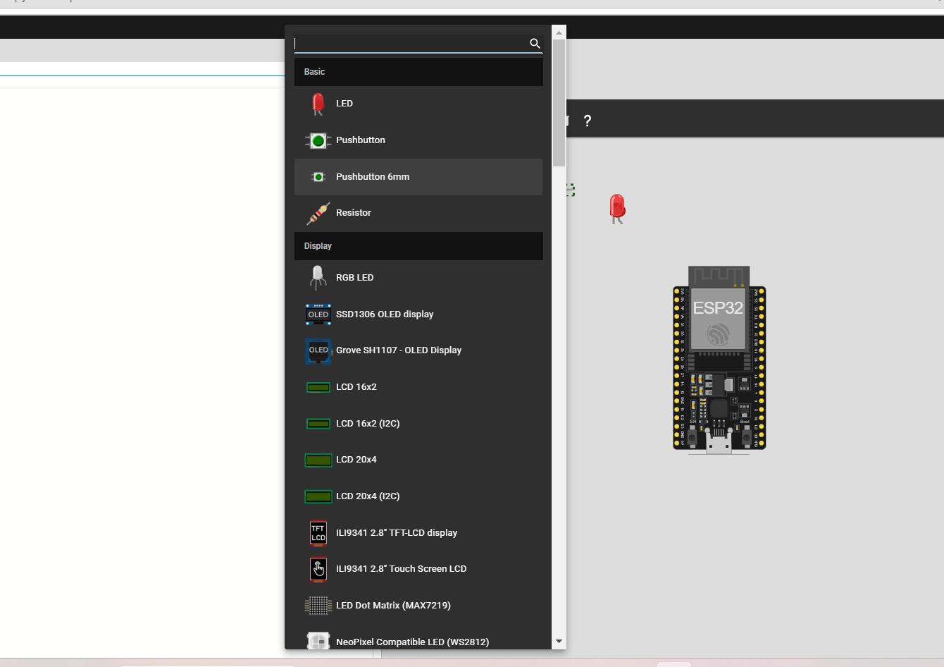 I added the Esp32 and checked whether in built esp32 led will blink or not. For that I used the default code and Clicked on simulation. The In built Led starts blinking.