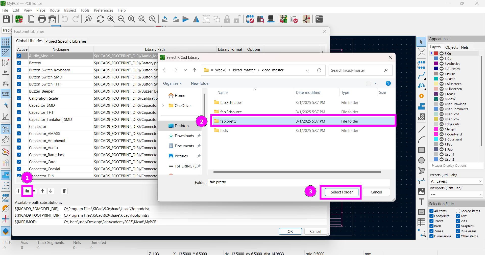 Go to the Preferences>>Manage Footprint Libraries to add fab footprint library