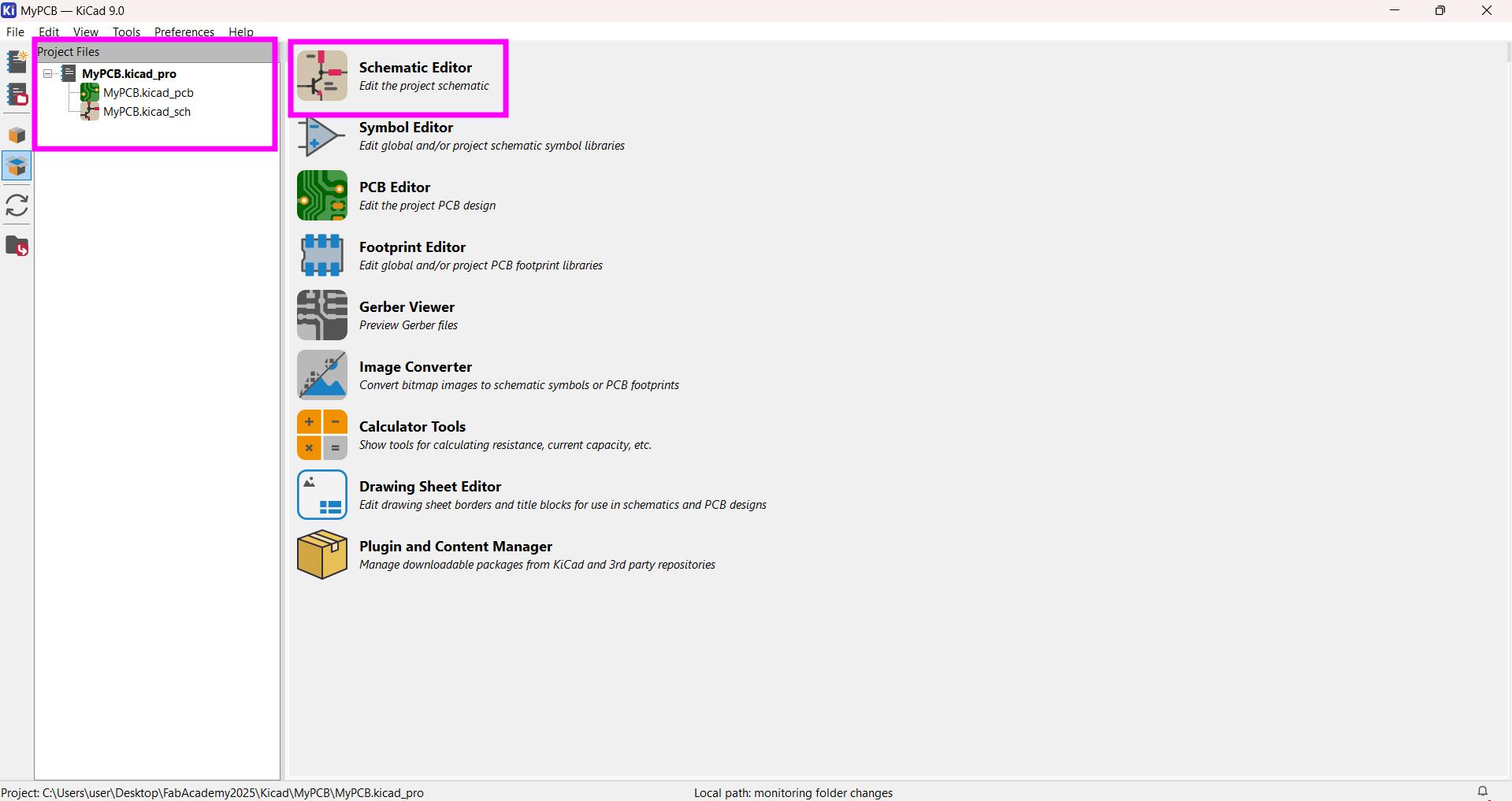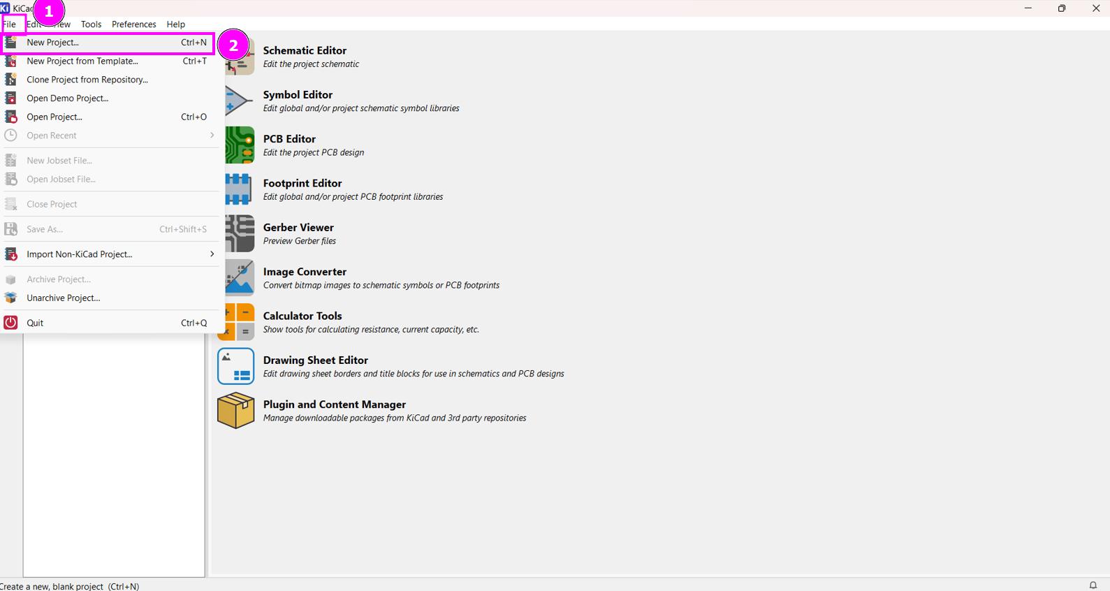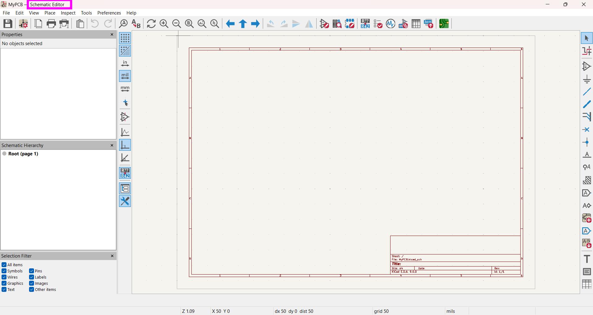 Once you created your project, go to the Schematic Editor where you can build your circuit.