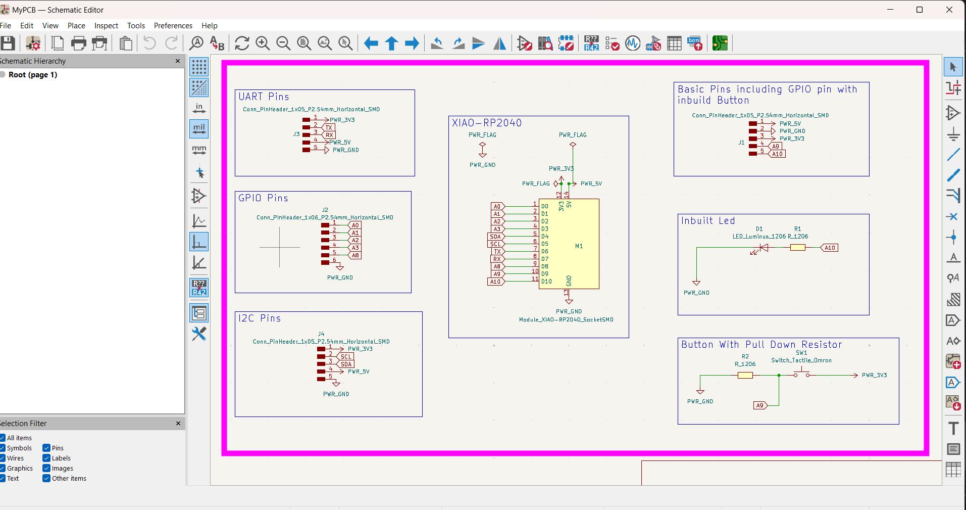 I started by exploring the XIAO RP2040 Pin diagram so that I can think about how I can use it for my custom PCB.