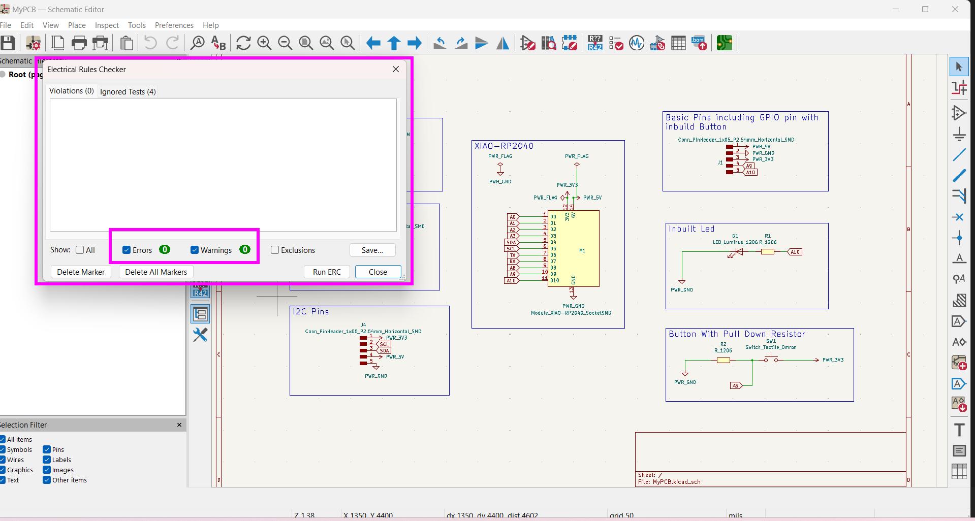 Wire the circuit using Net Label and run Electrical Rules Checker.