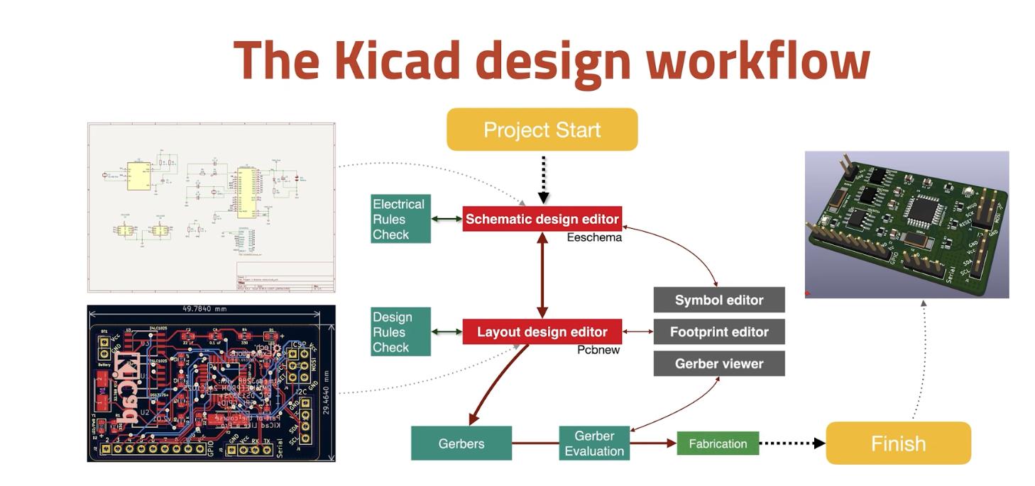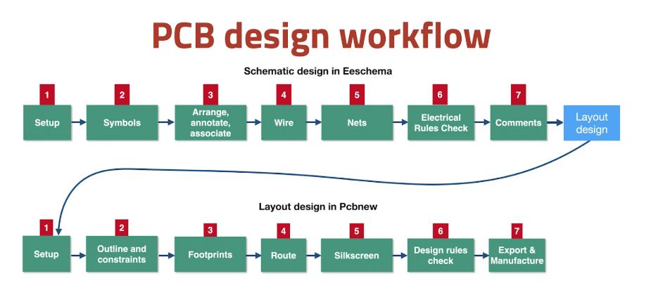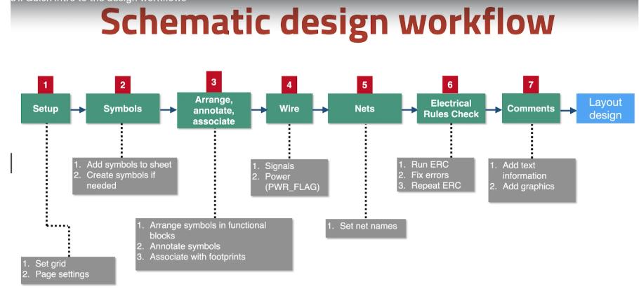 2. Kicad Design Workflow - I have included some images form PCB Designing course I had taken on Udemy few months ago. These are some pictures which are very helpful for me to understand the PCD designing workflow using Kicad.