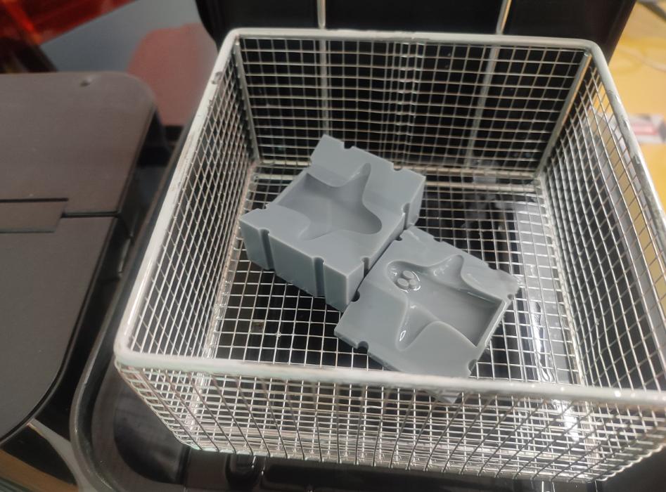 Mold printed in formlab3 are much smoother and the there seems to be no visible tool path. So they are much better than 3D printed mold. But when I did the molding using the mold printed in formlab, the silicon slipped between two parts of the mold although I clamped them. I think this issue can be solve by properly clamping the two parts of mould using two or more clamp.