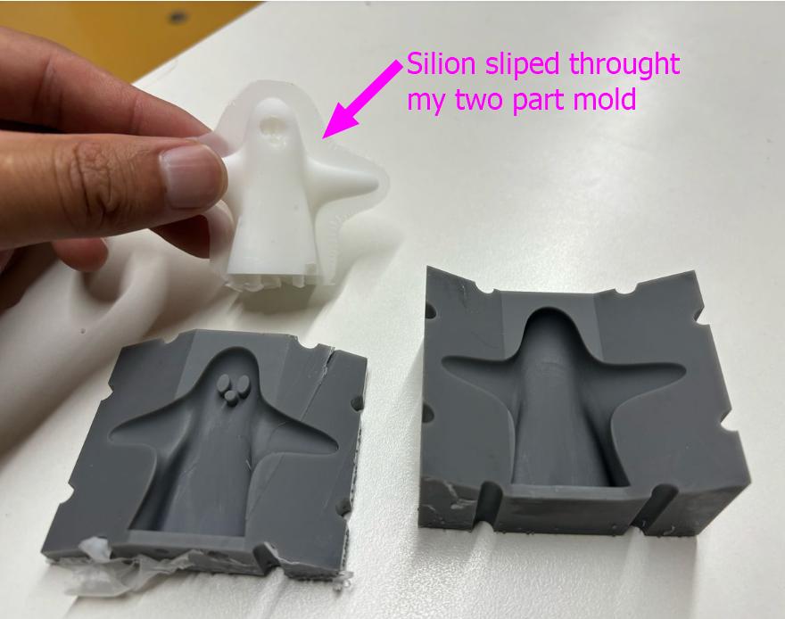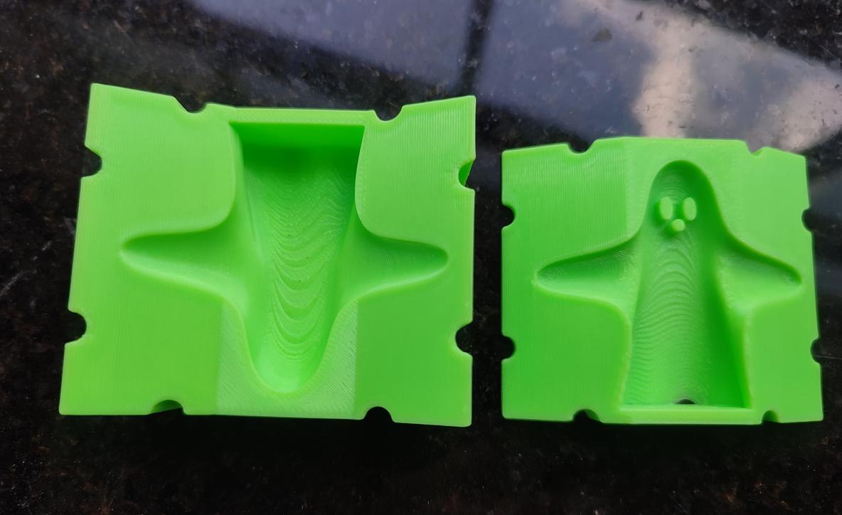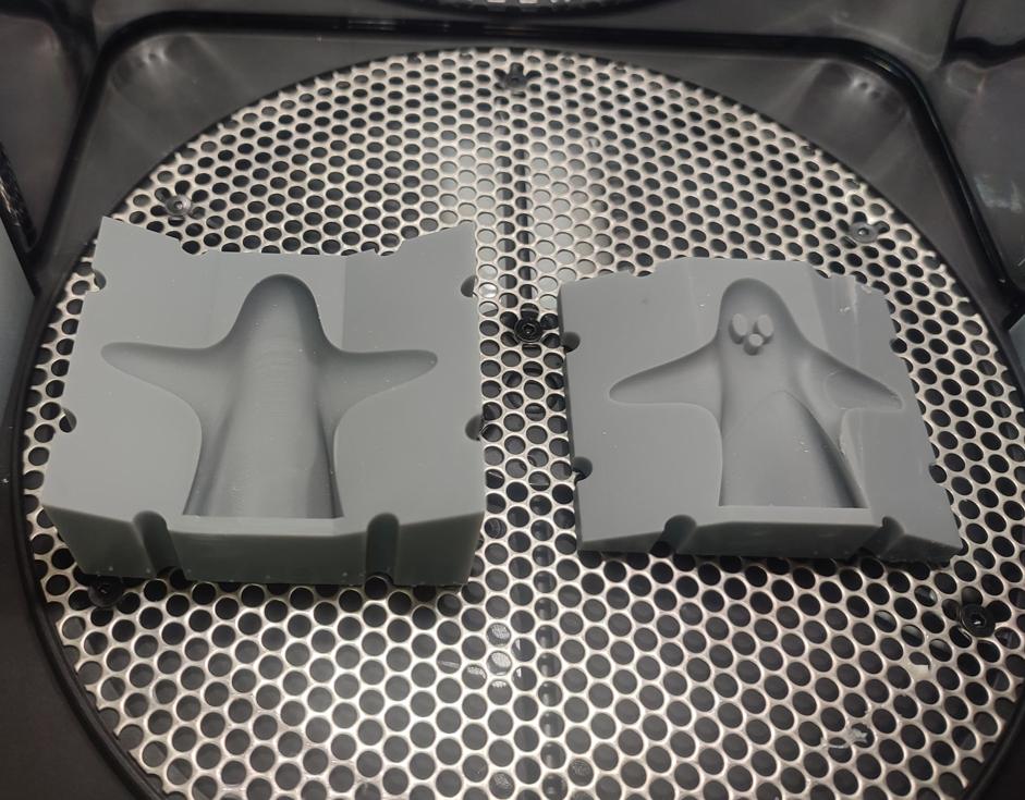 Molding and Casting using Mold 3D printed in Bambu A1* I used Liquid Polyurethane Rubber for molding my Ghost. I understand that Liquid Polyurethane Rubber will be hard once after molding but I wanted my Ghost to be solid and hard so I am trying it on my 3D printed mold of Ghost.