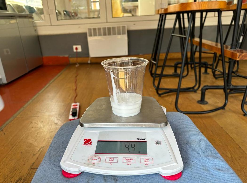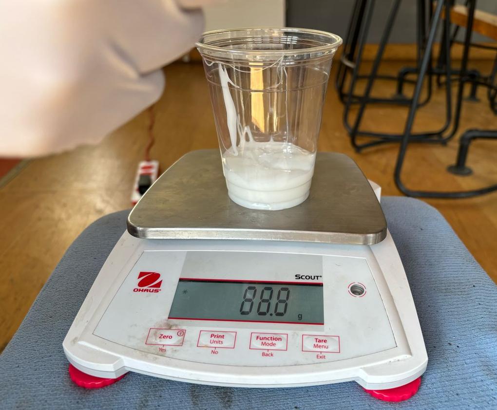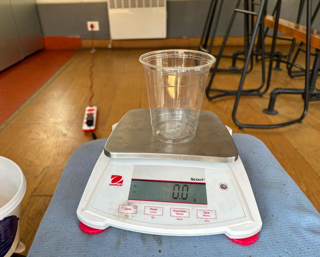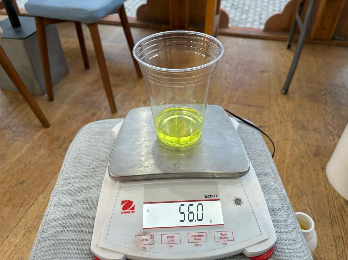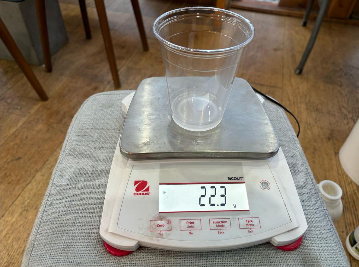 Liquid Silicon Rubber is poured into the plastic cup. I prepare 88.8g.