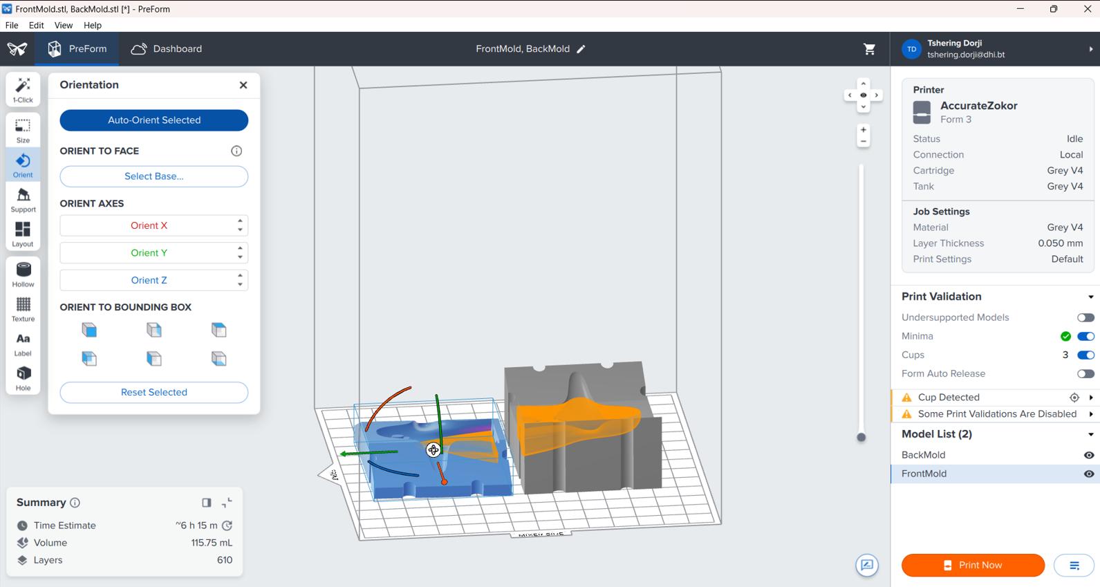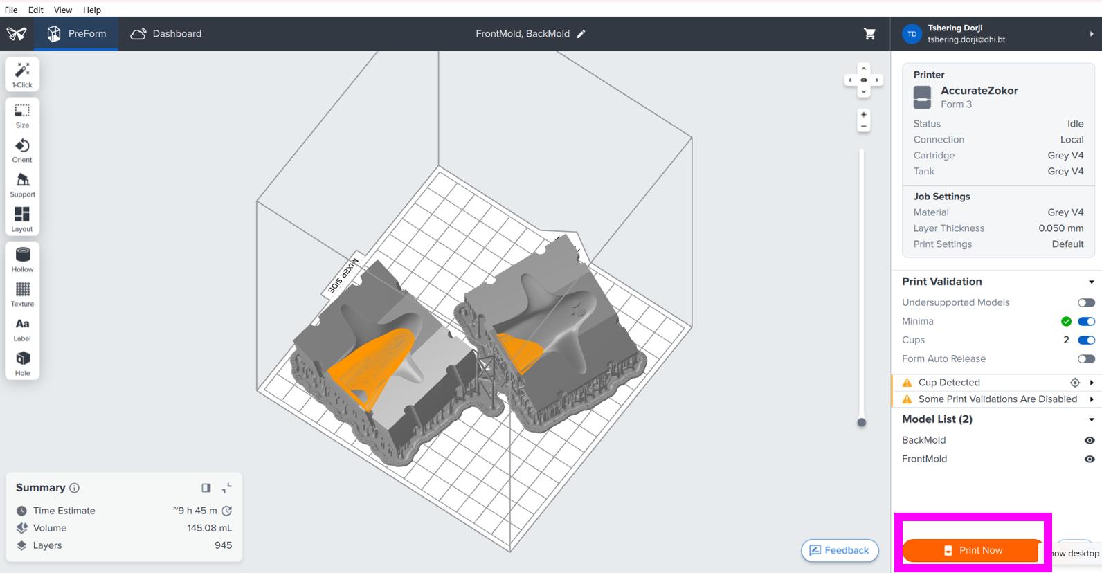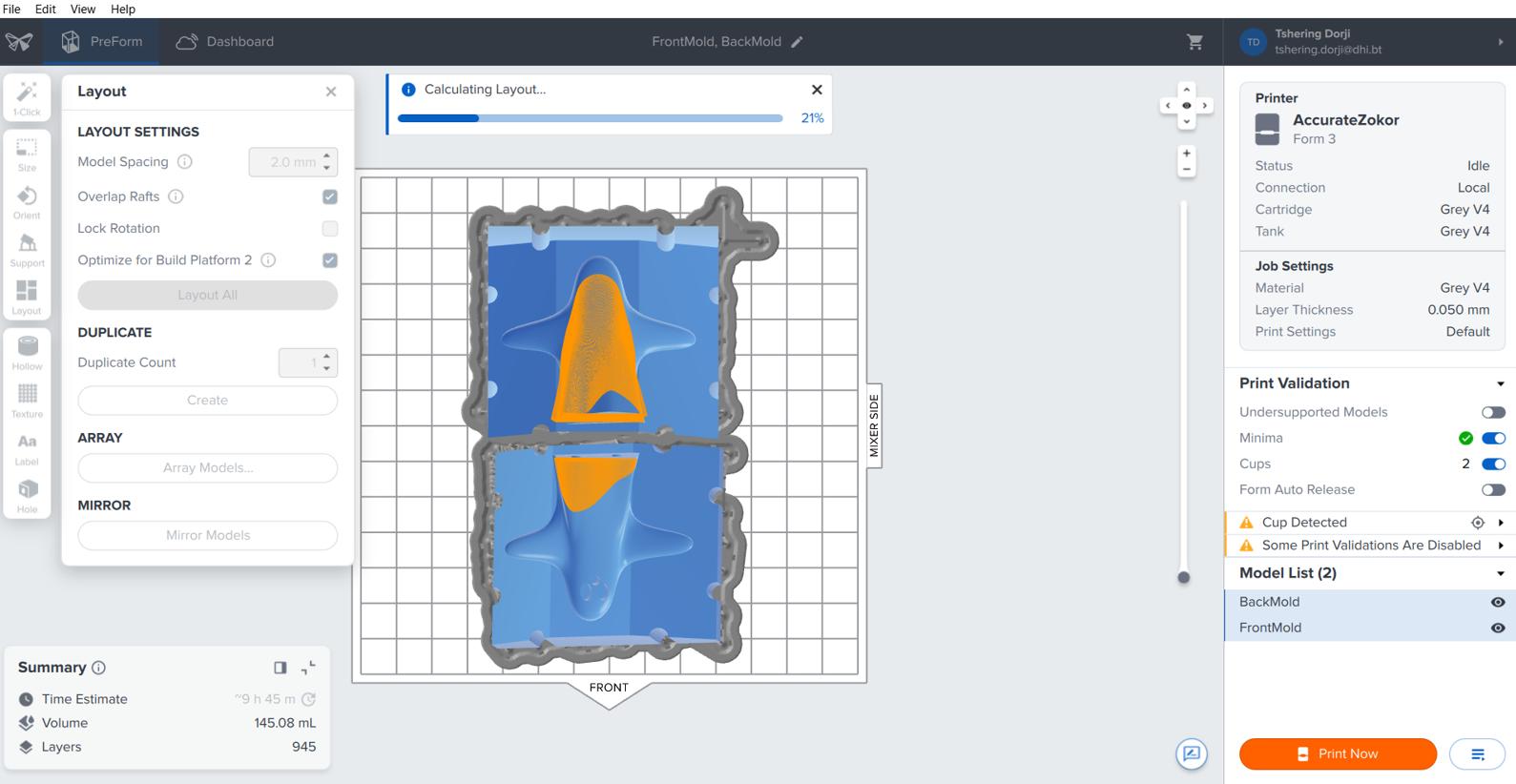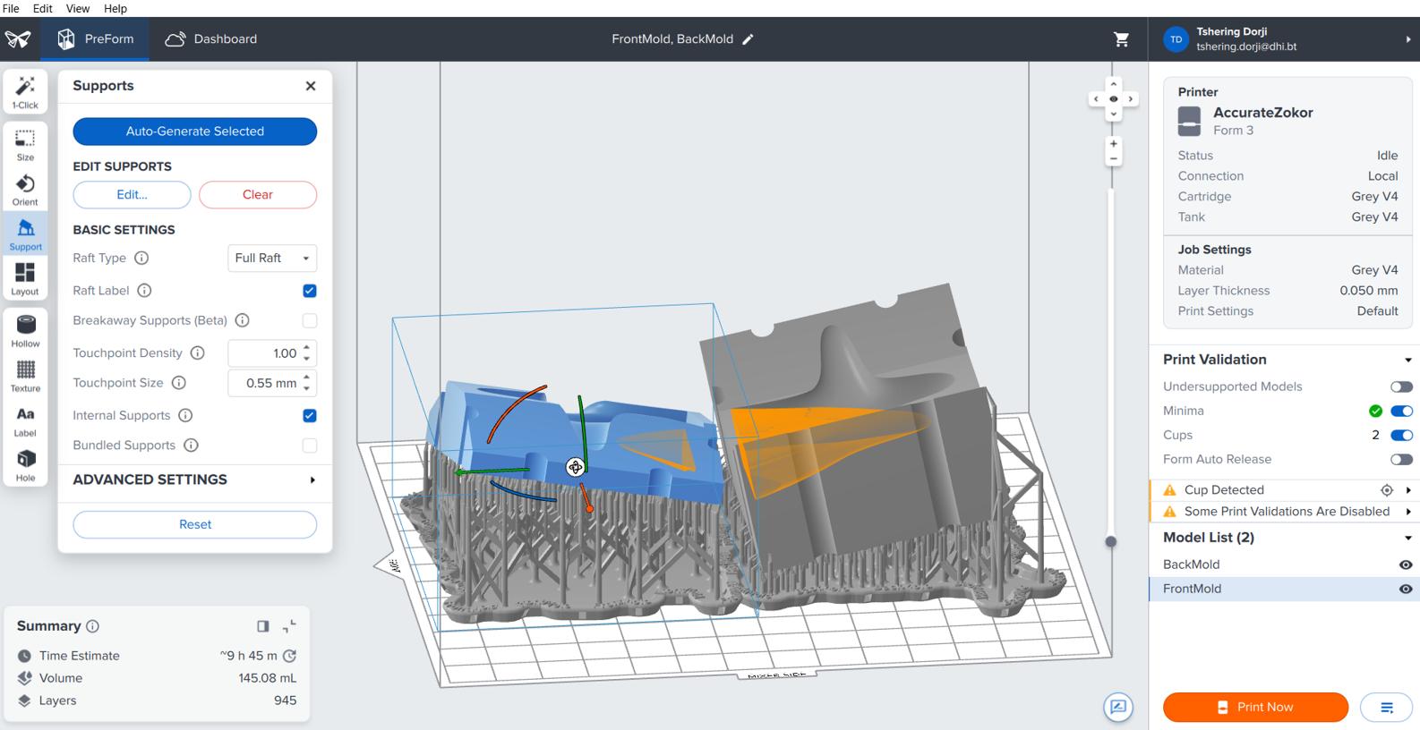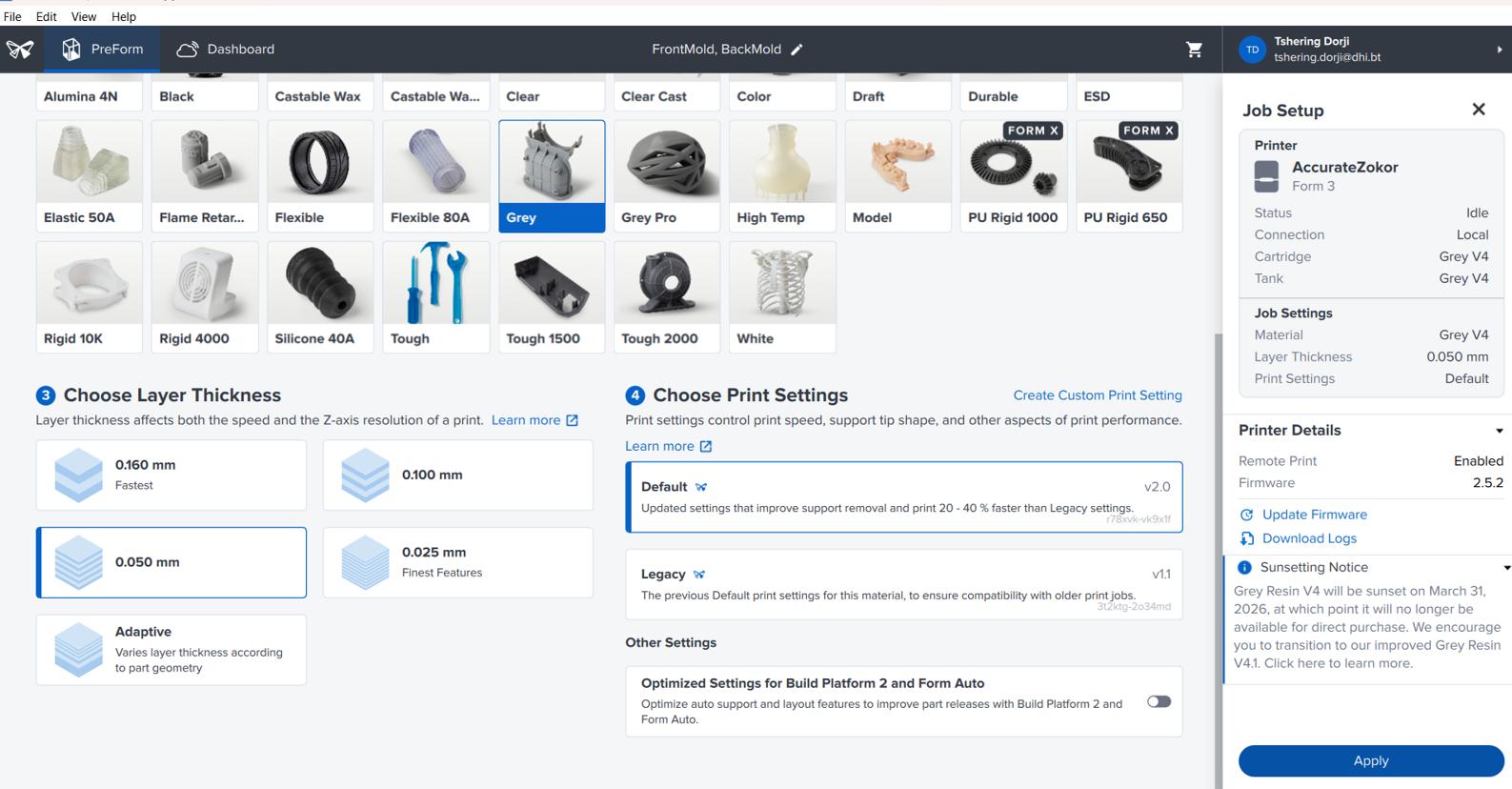 Here is how I slice my mold for printing in Form Lab. Following are the print setting I used to slice my modelin preform for FormLab3.
