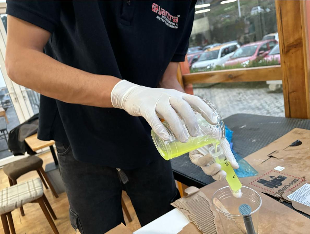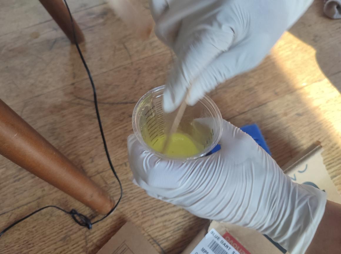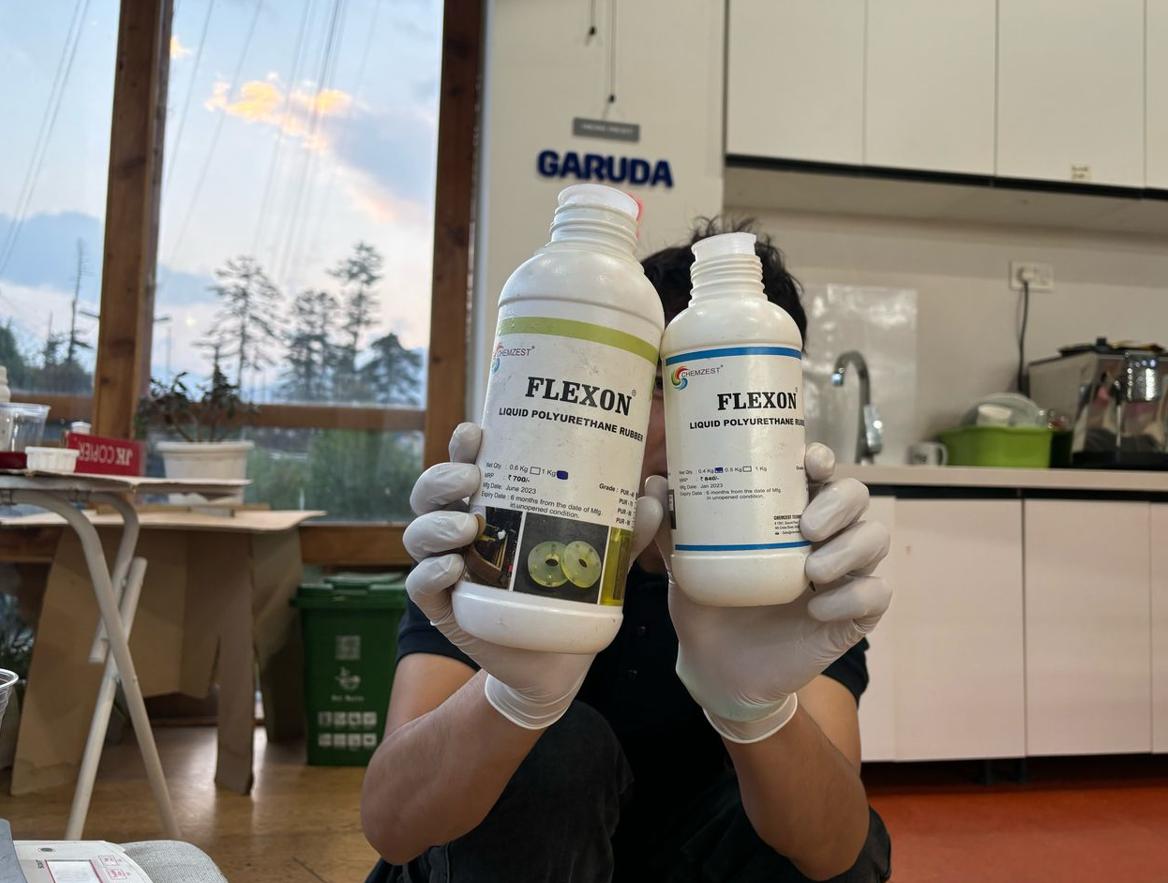 - Process: We mixed 178.4g silicone with 8.73g catalyst (5%), quickly poured into mold due to fast curing.