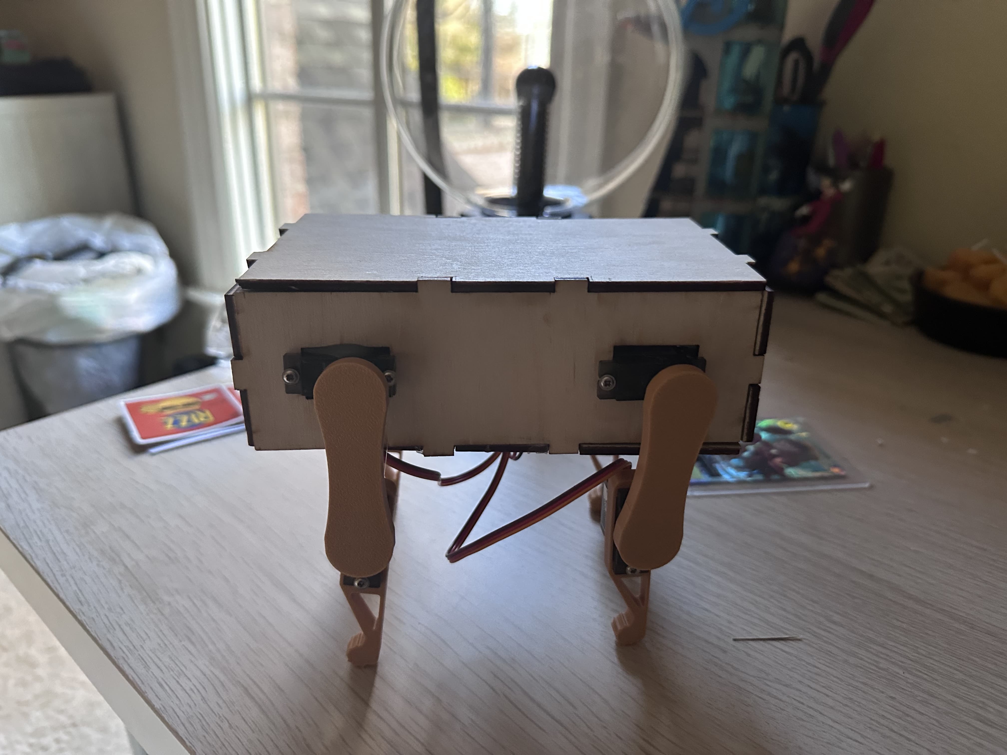 I also designed the mechanical structure, including the leg attachments and body that house all electronics and wiring.