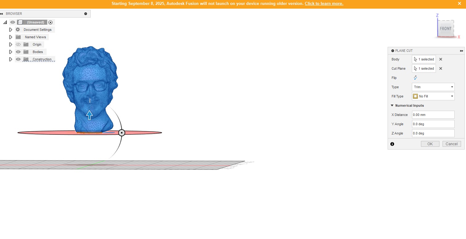 I then put the statue in Fusion 360 and cut off the stand because I only wanted the head.