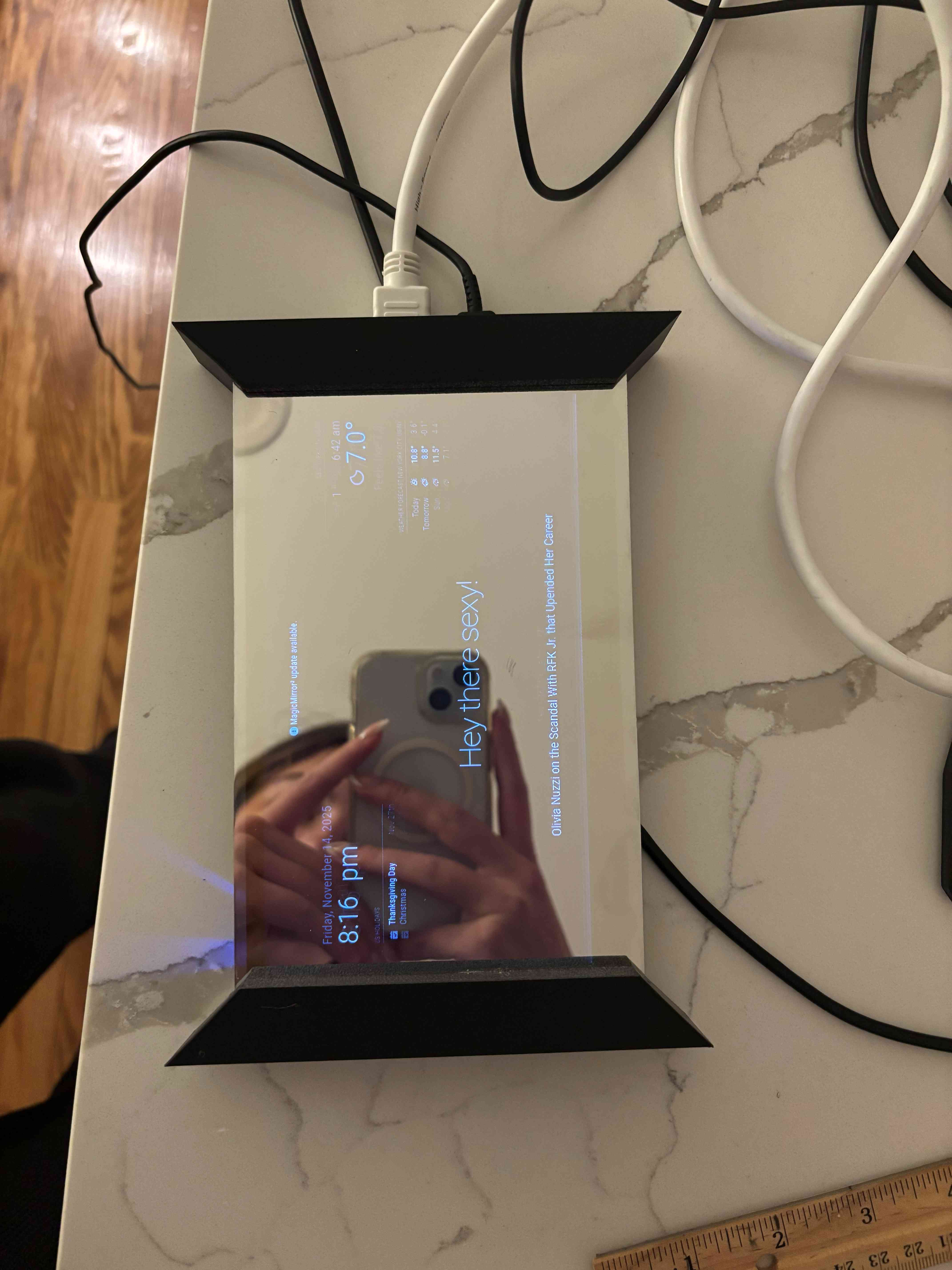 For the frame I decided to 3D print. As you can see I have slots in the sides that are prefect fit for the mirror and screen.