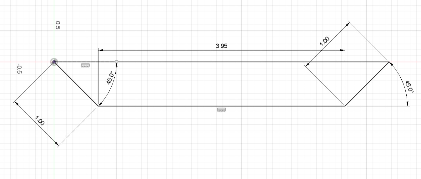 The first thing that I did was create ascetch of the base. The shorter side I made the width of my screen then the diagonals I wanted to be 1in and on a 45 degree angle. The last side I didn’t care what the length was because it just connected.