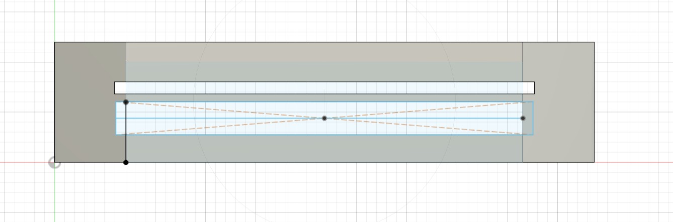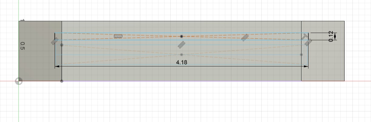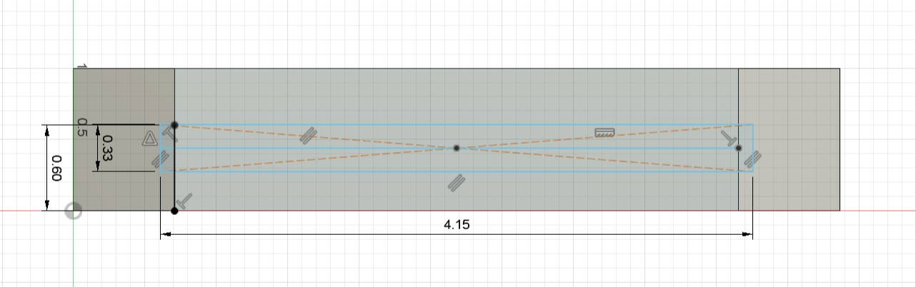 Then I made a scetch of the slot for the screen. I made the width .1in thicker than my screen width and I made it the length of my screen. The two extra part on the side are to make the angle cut. I did the math to figure out i needed .10 in on each side of extra length so a total of .2 in.