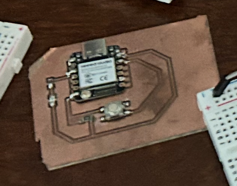 This week’s goal was to create my very own MicroController PCB and test it. I used the Seeed Studio Esp32-S3 Xiao MicroController to control a button using a button, LED, and two resistors of different ohms.