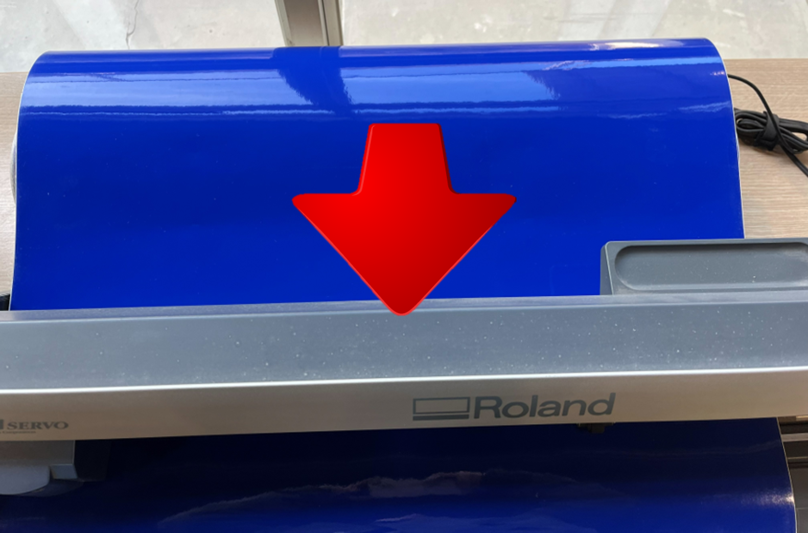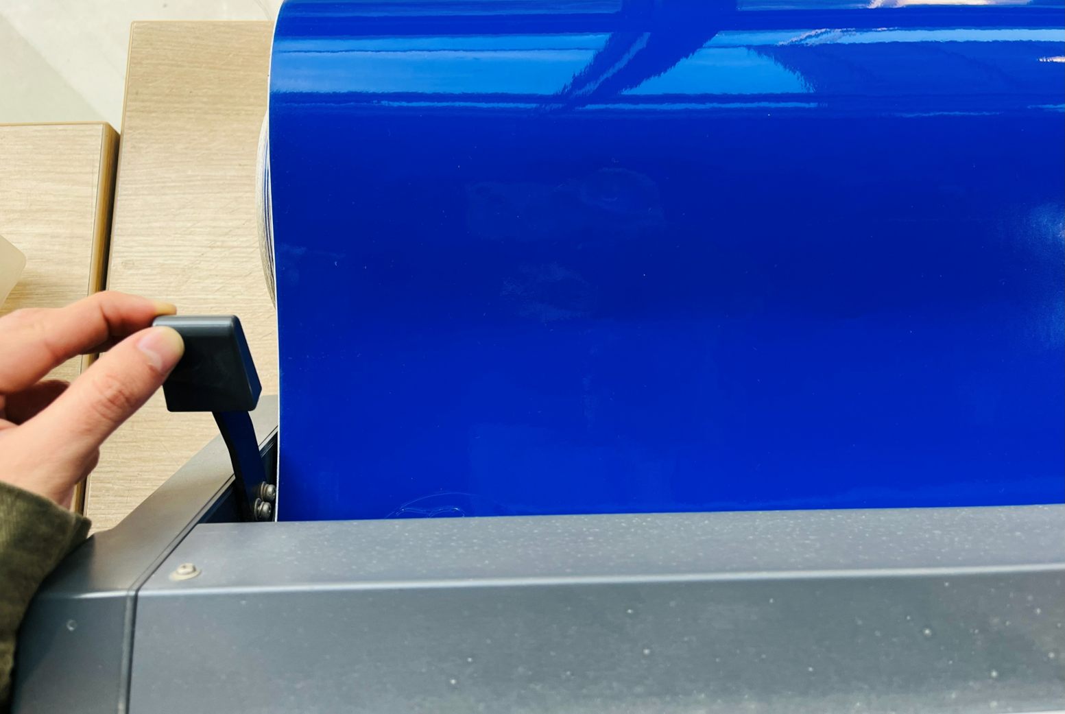 - Once the material was properly fixed, I turned on the machine. When you press the power button again after turning it on, the cutter automatically measures the length of the material to detect its available area. This step ensures the machine knows the limits of the vinyl before starting the cut.