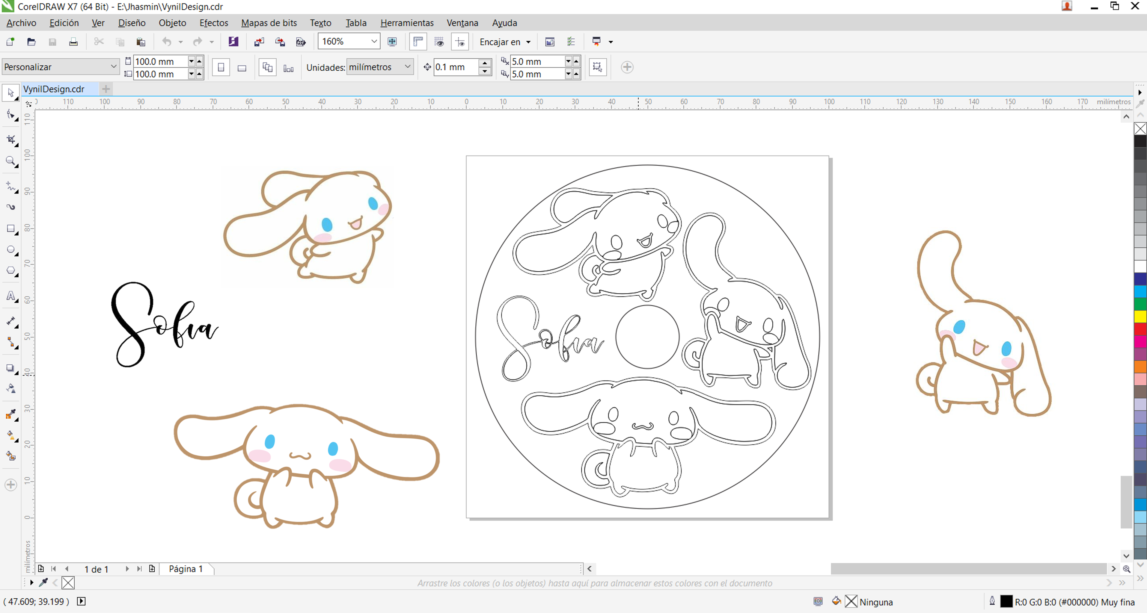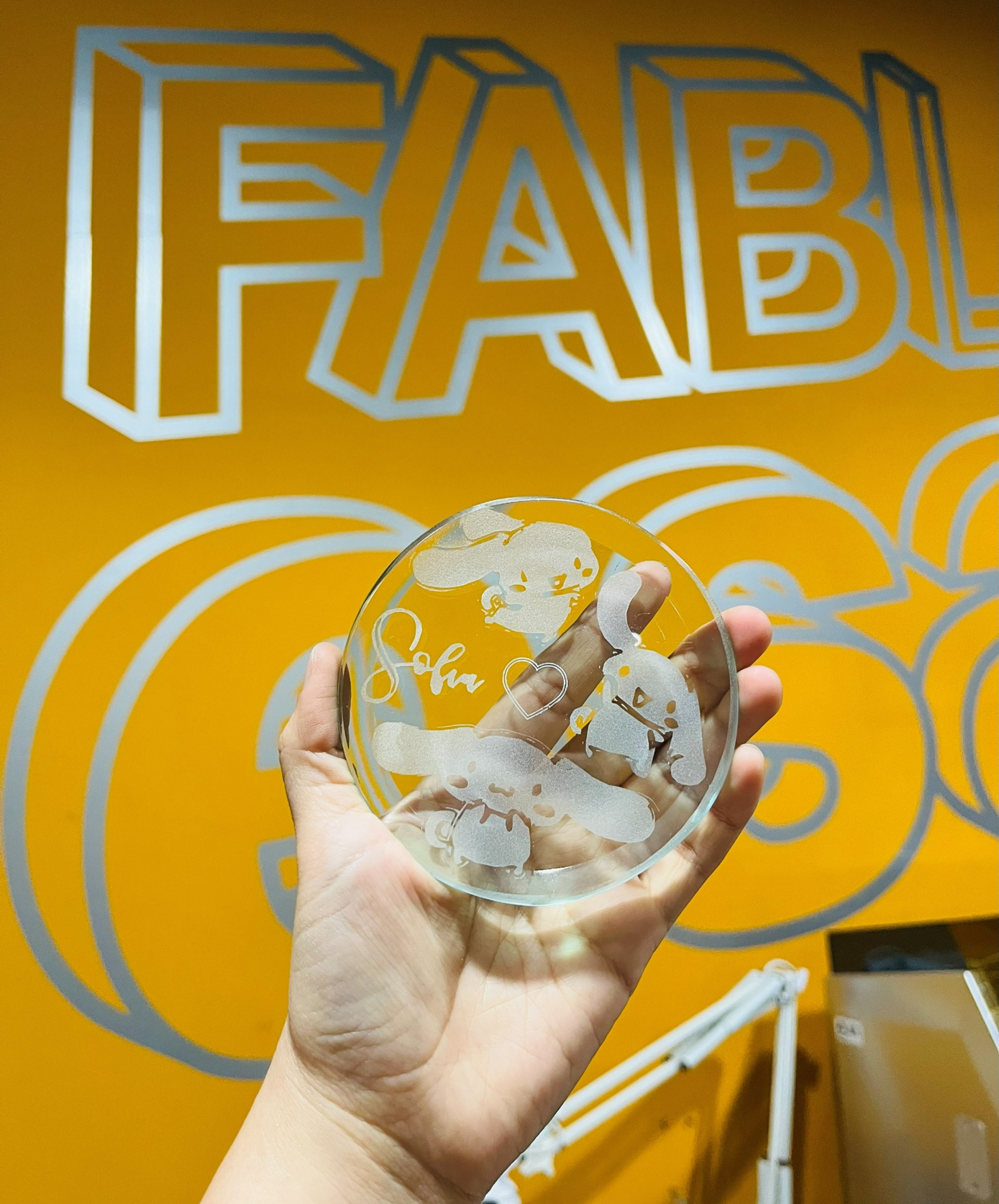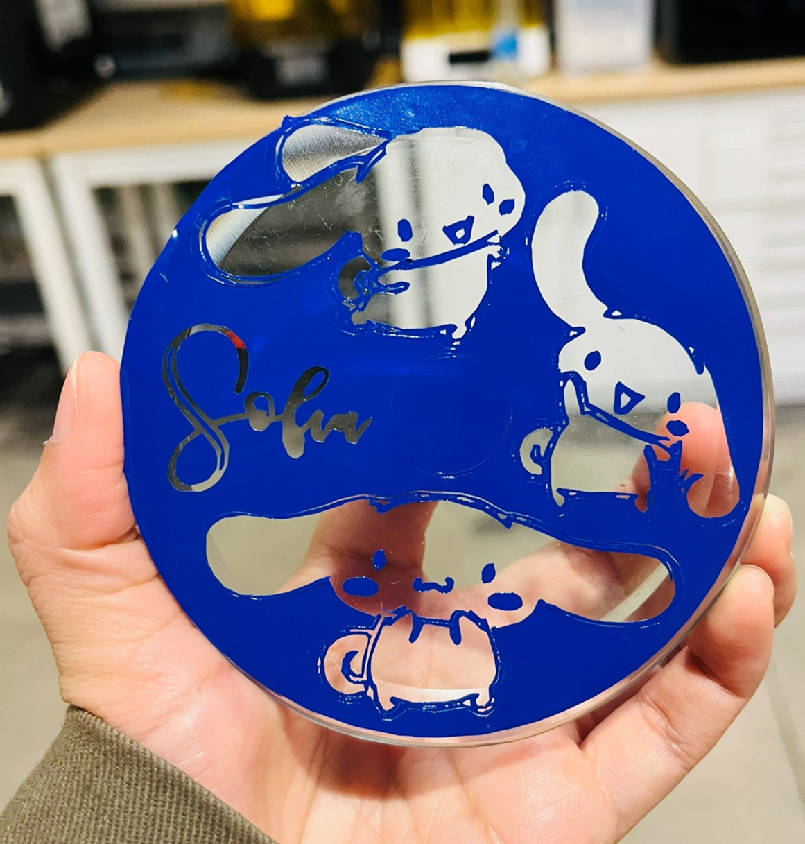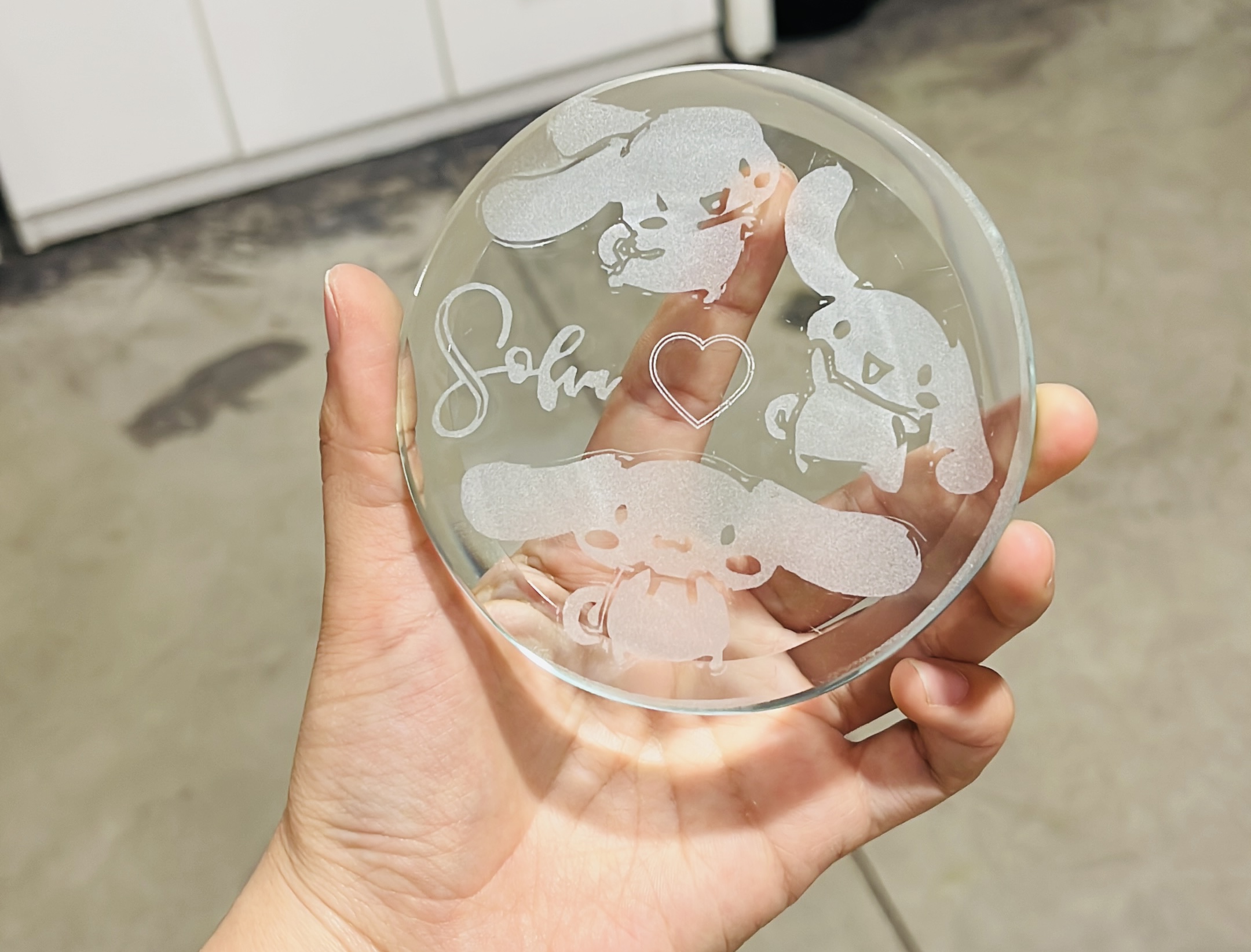 — Cinnamoroll, one of Hello Kitty's friends — and decided to personalize the coaster for her. I arranged several Cinnamoroll