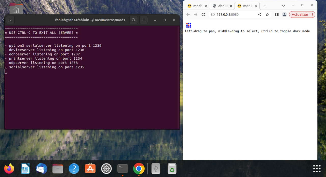 After pressing Enter, the ModsProject interface opened automatically in my browser, ready to configure the cutting settings and load the SVG file.