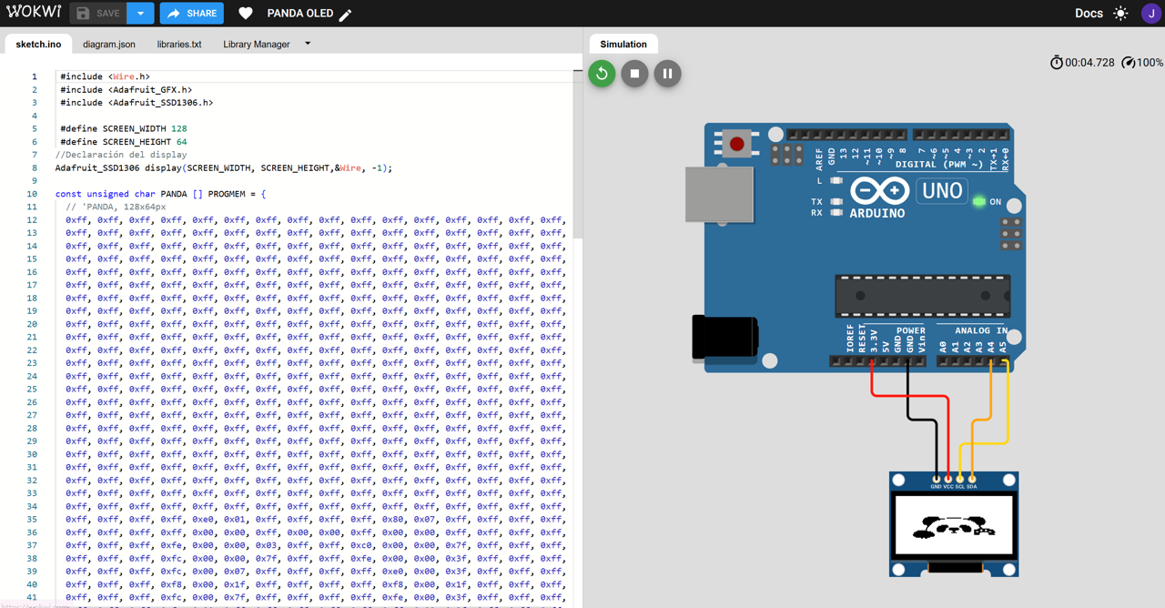 Copy the hexadecimal matrix generated by image2cpp into the Arduino code. - Connect the OLED display to the microcontroller: