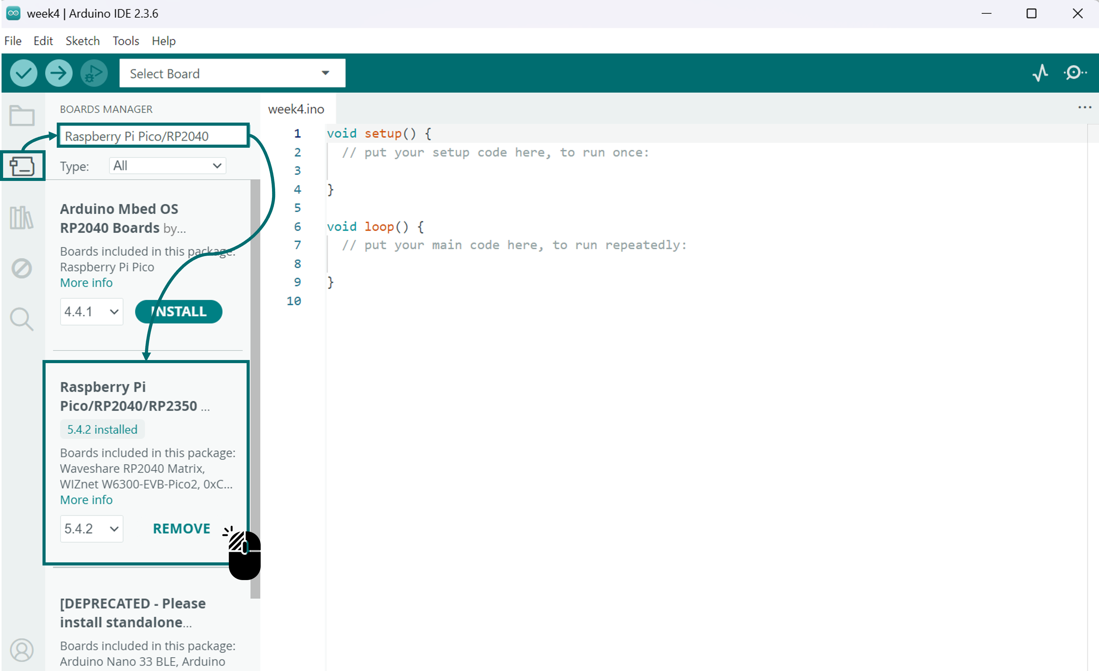 Step 3. I added the Seeed Studio XIAO RP2040 board package to Arduino IDE: