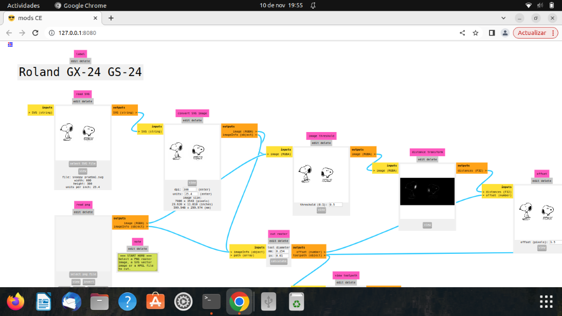 c. Print the image: I used the Roland CAMM-1, a smaller vinyl cutter. For printing, I used mods project, a modular cross-platform tool for fab labs.