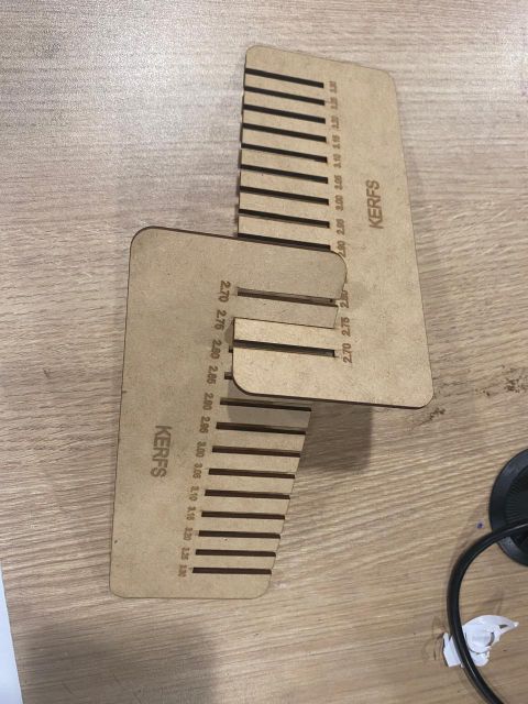 Kerf: I used different measures to find the kerf for my parametric design. Considering the width of the material I'm using (MDF), the kerf i'll be considering is 0.125 mm.