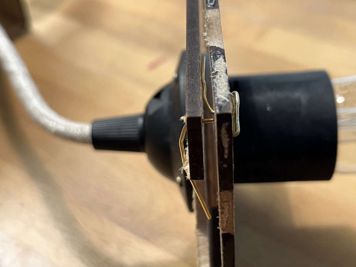 To turn the object into a lamp I drilled a hole for the cable and assembled the electrical wiring.