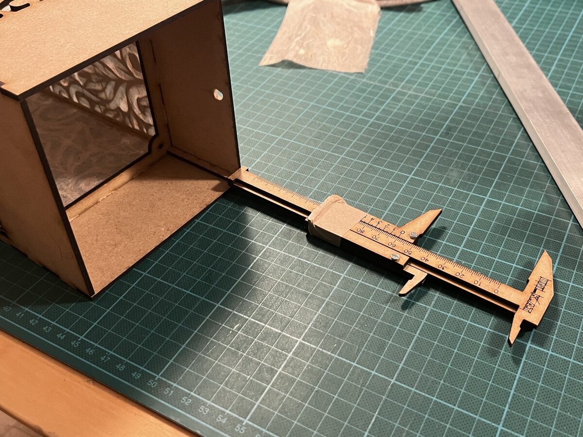After all five sides were installed, I used our self-made calipers form our Lab to adjust the right position for the mounting frame.
