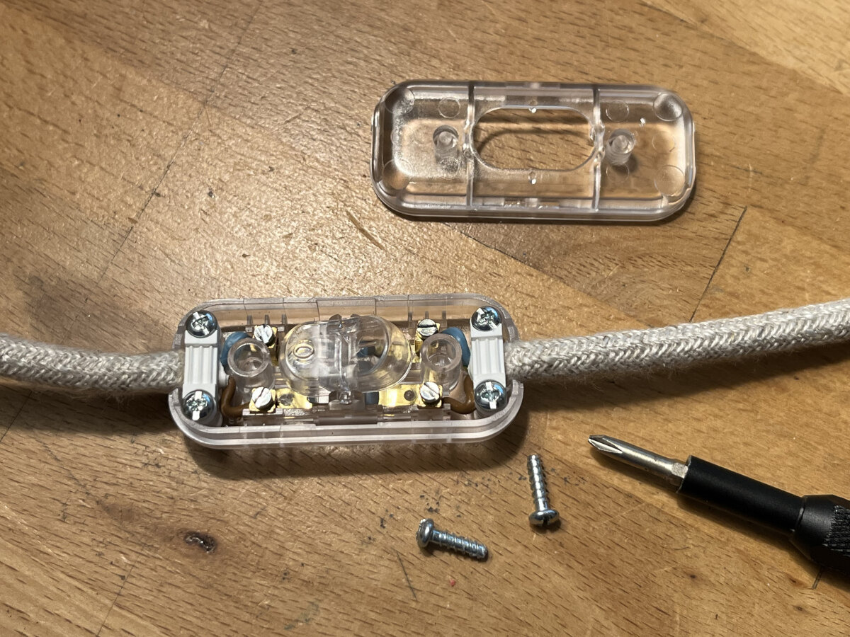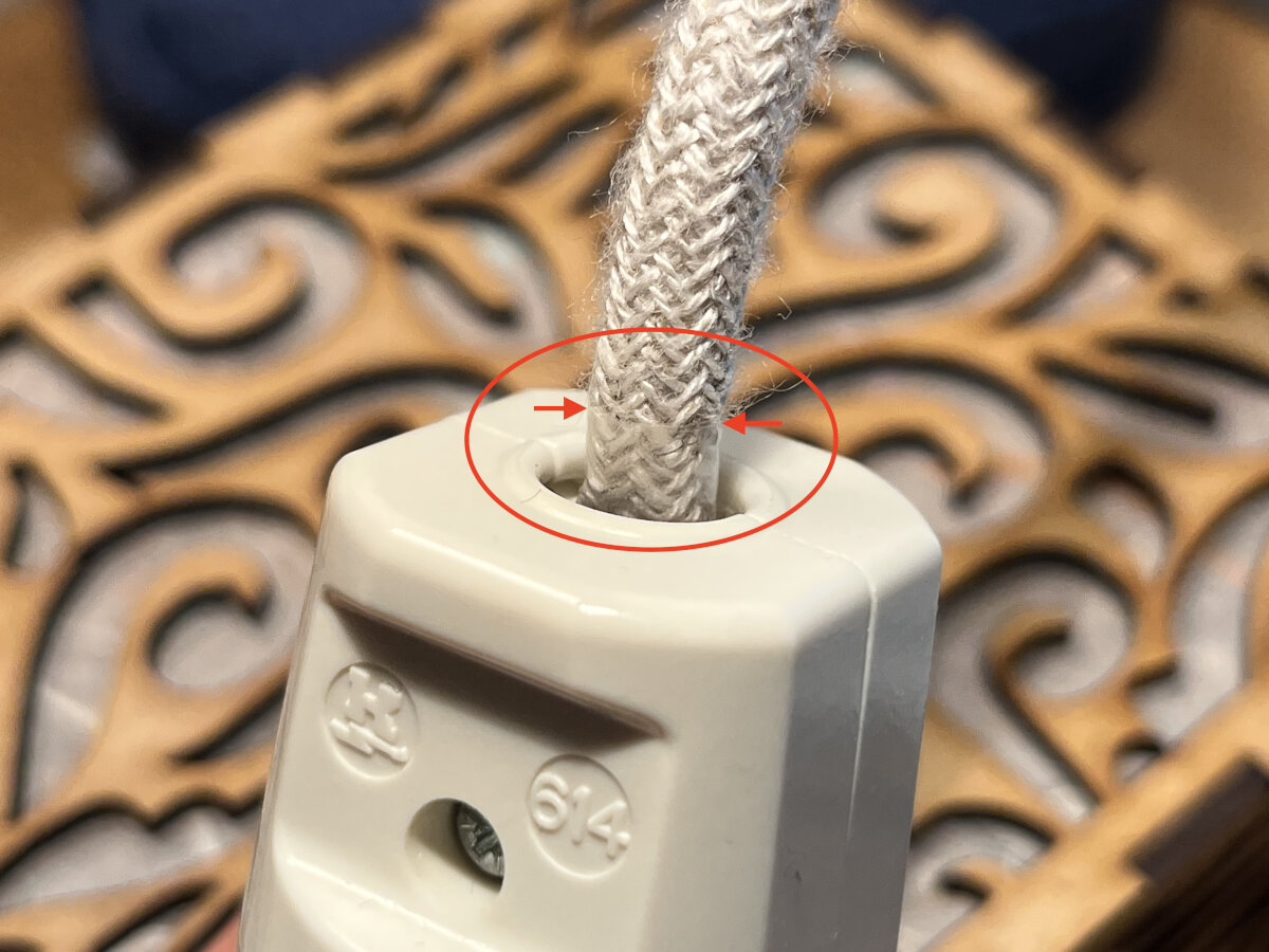 For the cable I used a textile cable with a braided linen sheath to match the self-made look of the lamp. The switch was not available in a cream color why I choose the transparent version.
