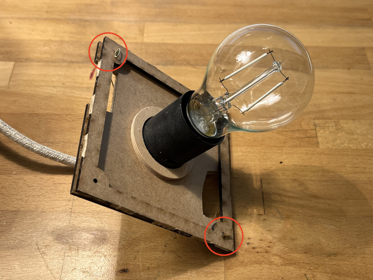 In the original design nothing was specified how the lamp platform should be connected, so I bend some paperclips into shape, which later got replaced with M2x12 screws.
