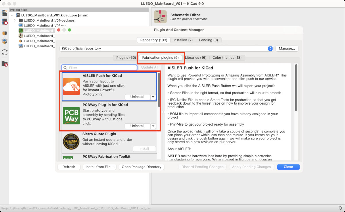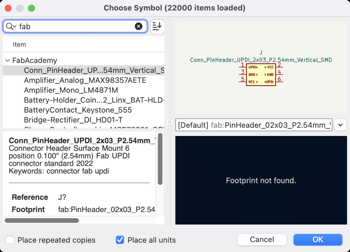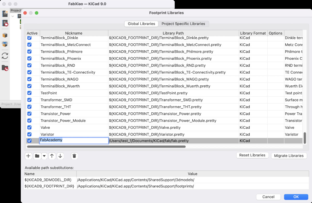 For the installation I followed the official FabAcademy KiCad Library tutorial.