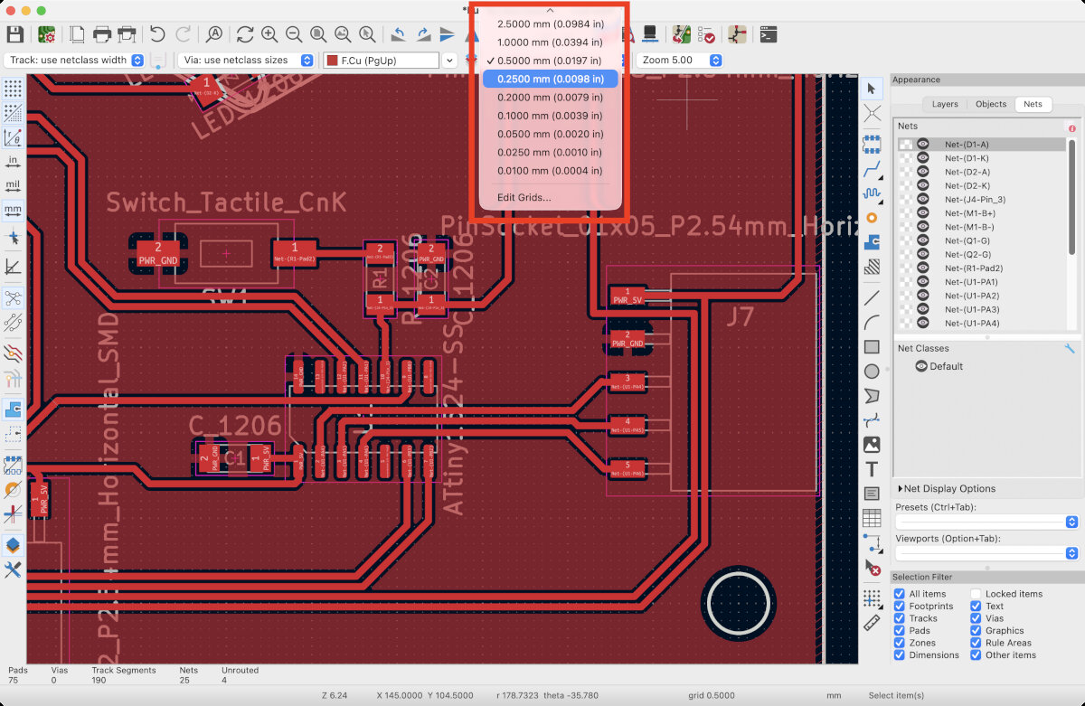- before placing any components check your grid size and keep it always the same to avoid weirdly short tracks.