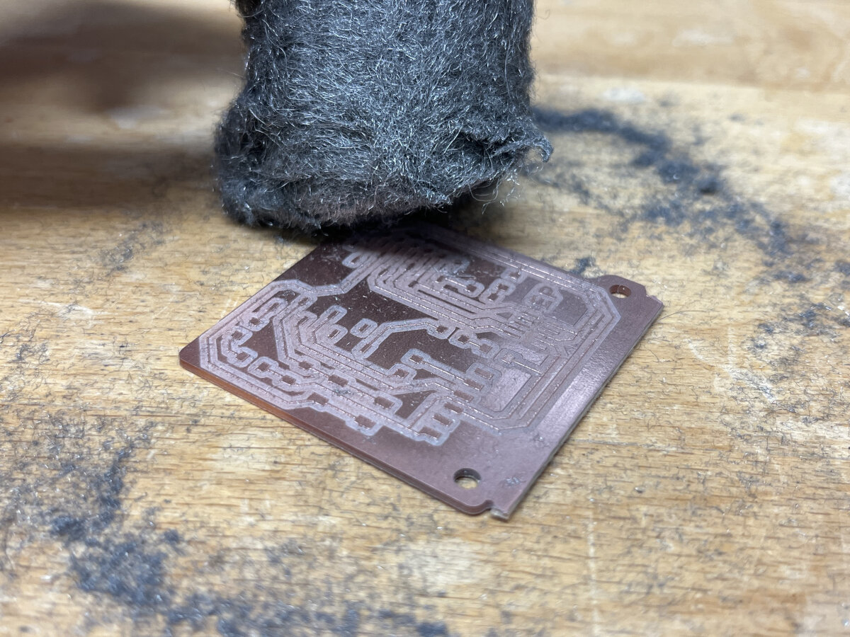 After the milling process there are still a ridge of copper on the surface. To remove the ridge, steel wool is used.