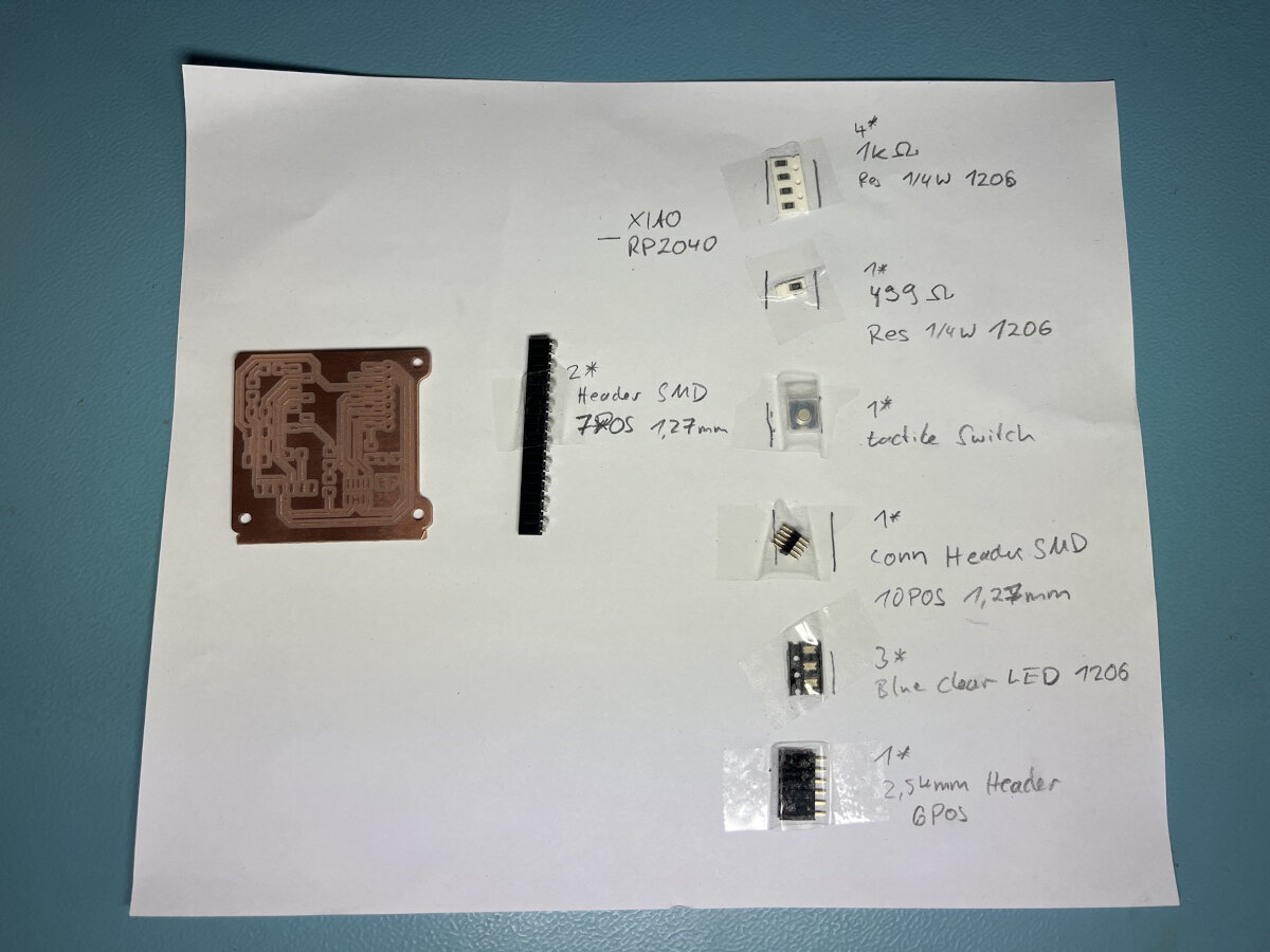 Before I started I searched for all the needed components and glued them on a piece of paper to keep track of them (and prevent loosing them).