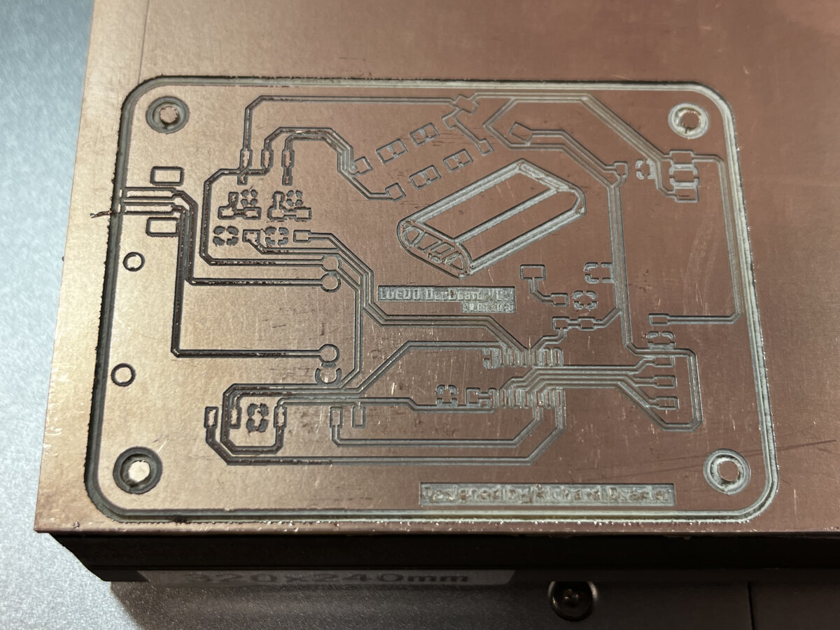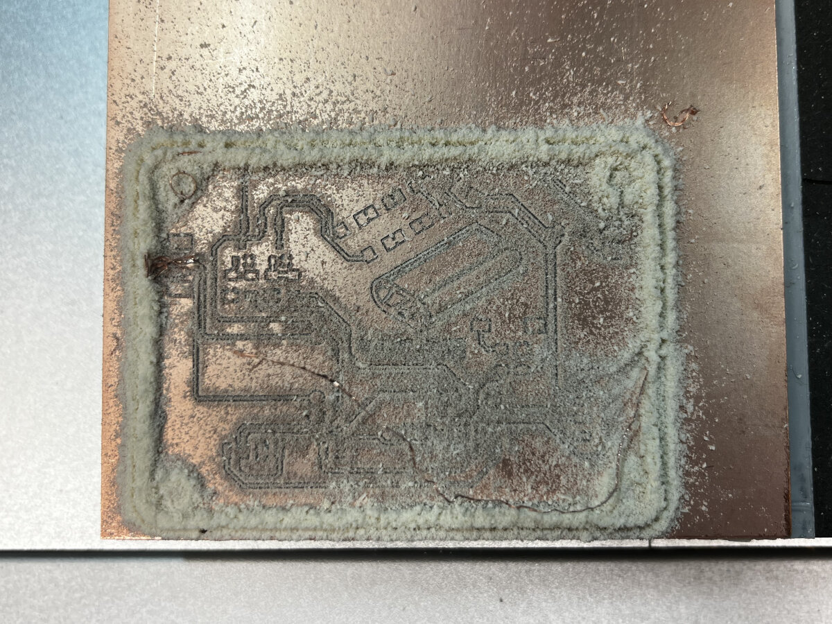 During the milling process, luckily no errors occurred and everything went fine. After about 20 minutes the board was finished and I could vacuum off all the accumulated dust of the board.