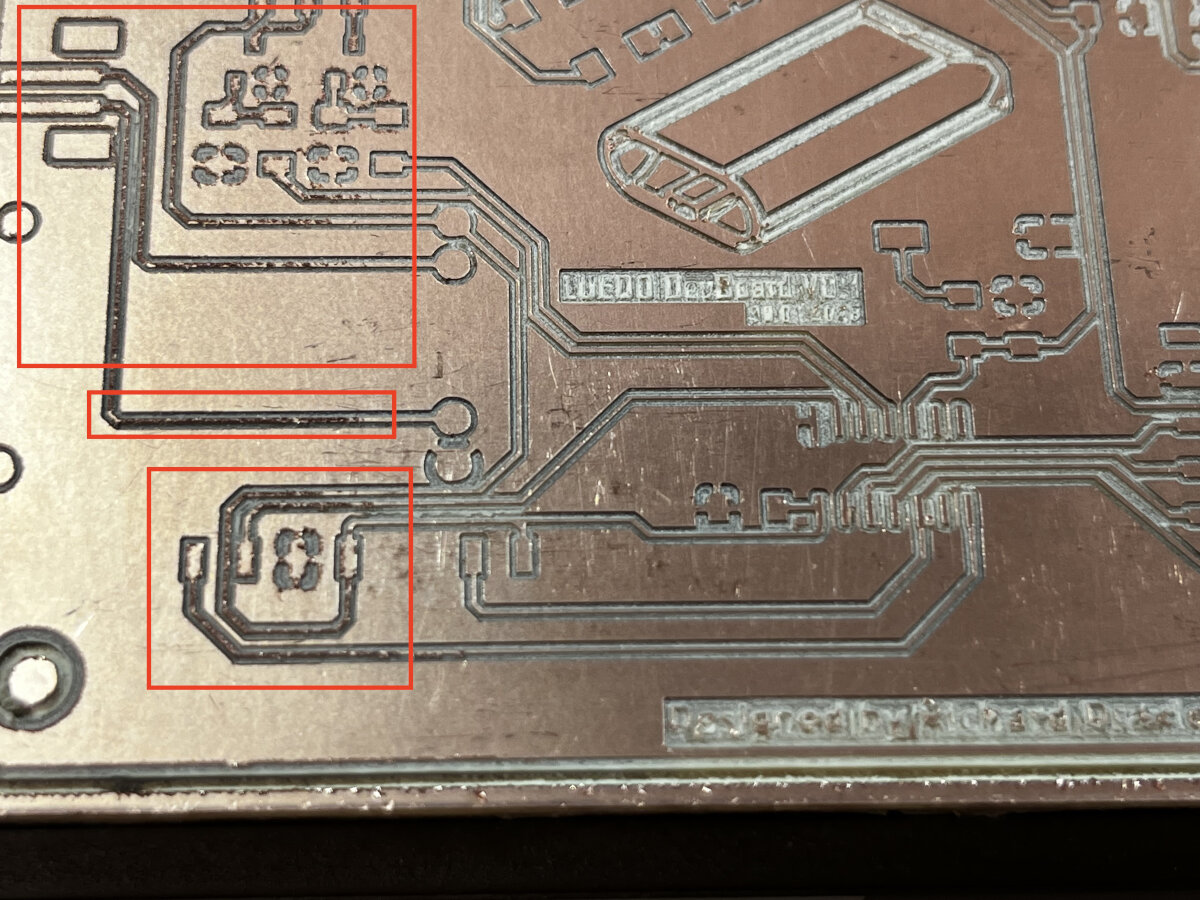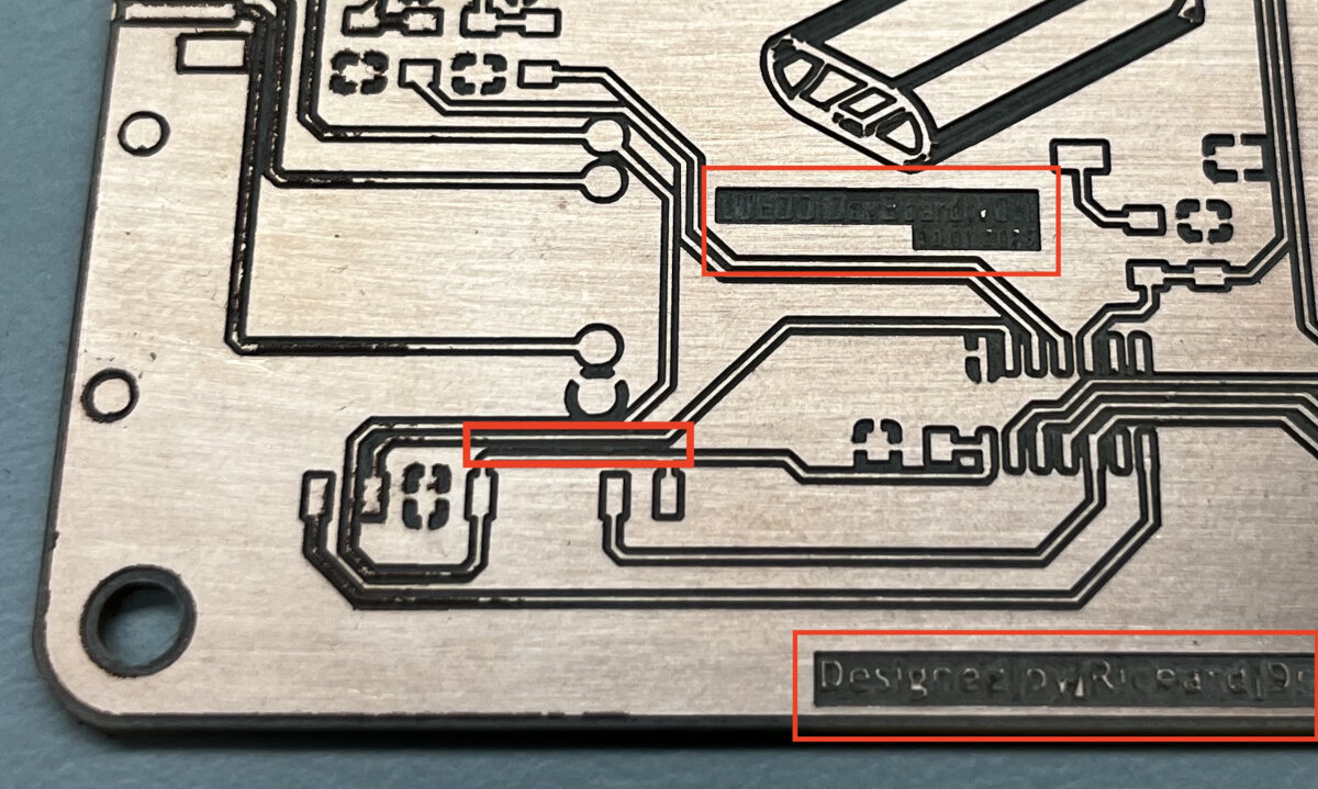 One part of the GND pad ripped of. In the original design it was only 0.2 mm. The text was to small as well, it ripped of.