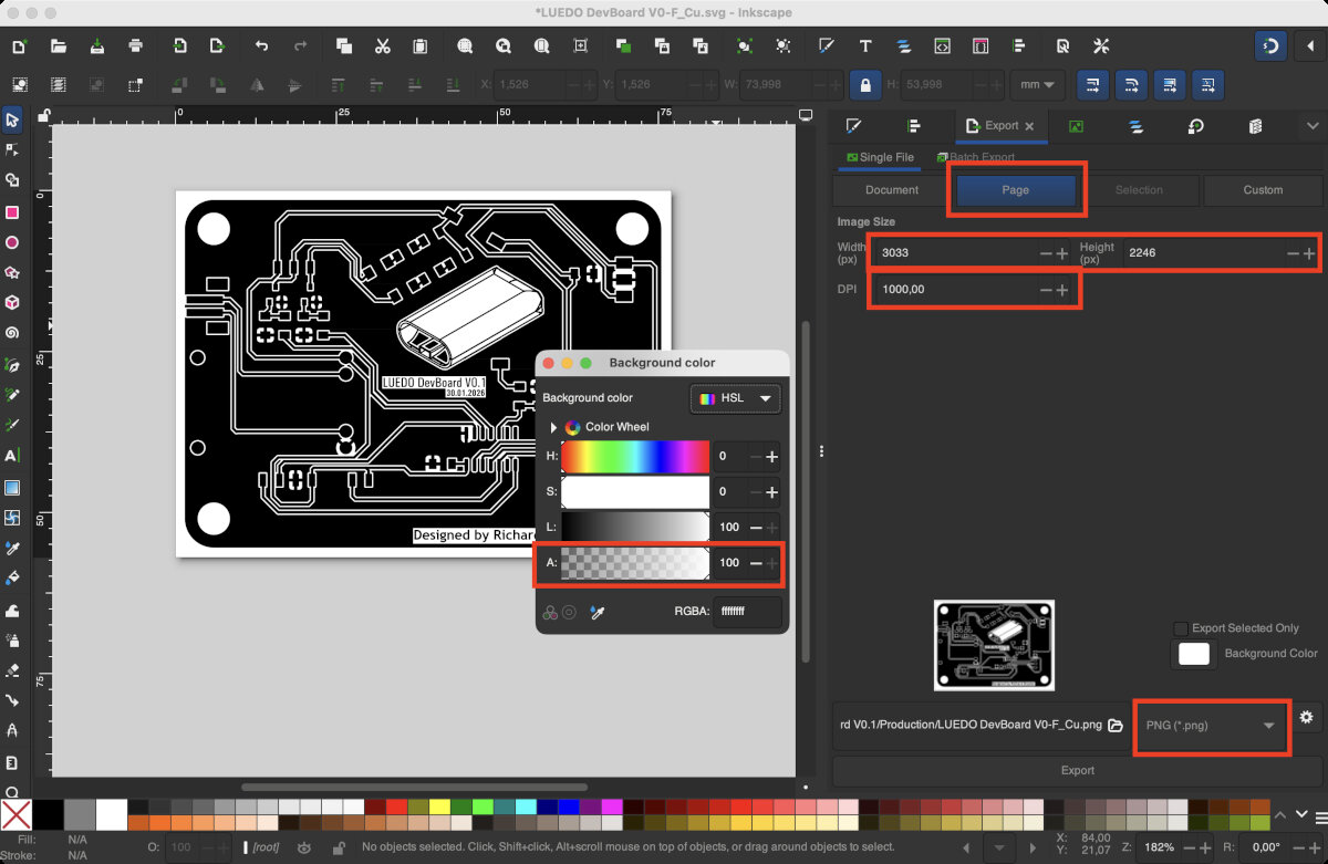 KiCad Layout to PNG file (KiCAD, Inkscape)¶