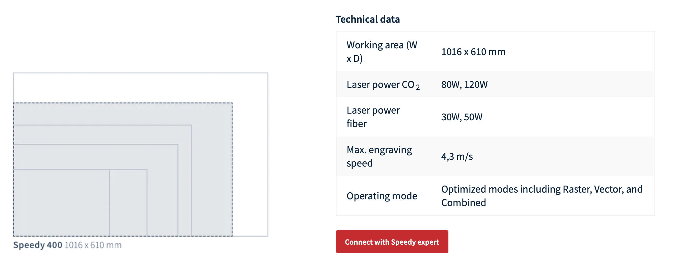 The vendor's website lists the parameters of this model:
