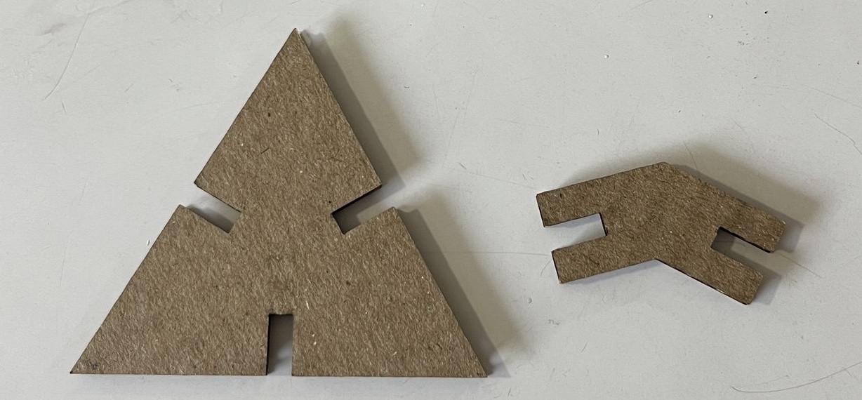 It was good, but needed to be adjusted for both the kerf and cardboard compression. However, it was very helpful to have parameters, and we could quickly change the appropriate values; the changes were automatically implemented both on the triangle and the connectors.