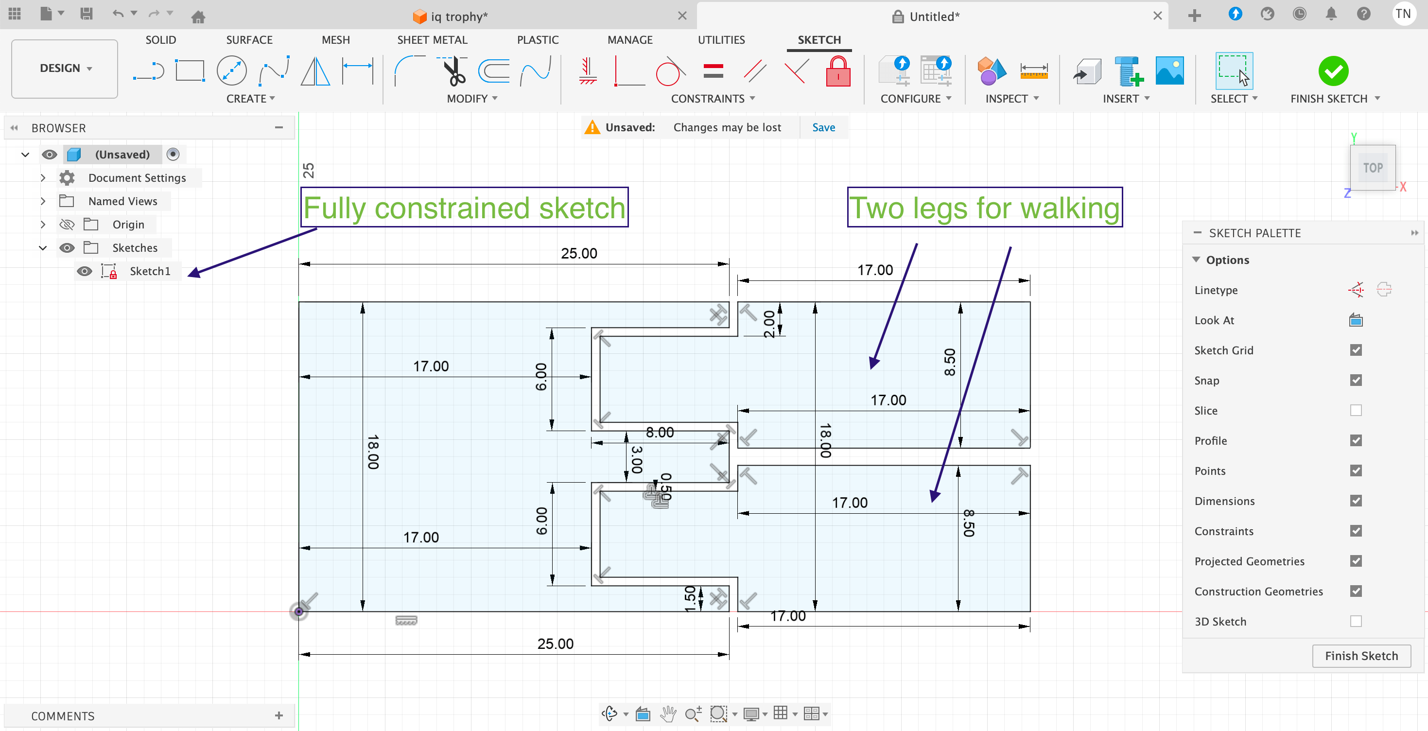 Subsequently I went to reduce the margin to make the hinge tighter. Unfortunately when changing the parameters of the sketches it changed the extrusions