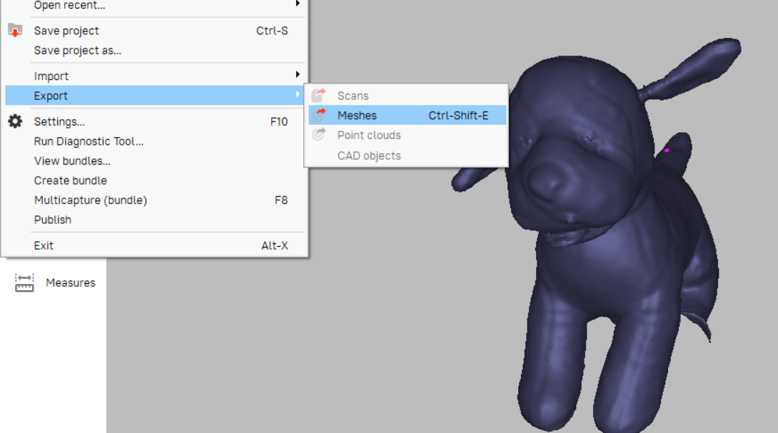 Except the underside and bottom of the dog. So we turned the dog over to scan the backside, however some difficulties were there, both with the scanner itself to recognize the same object, as well as issue with the dog, namely that the ear fell into a different position when laying on its side.