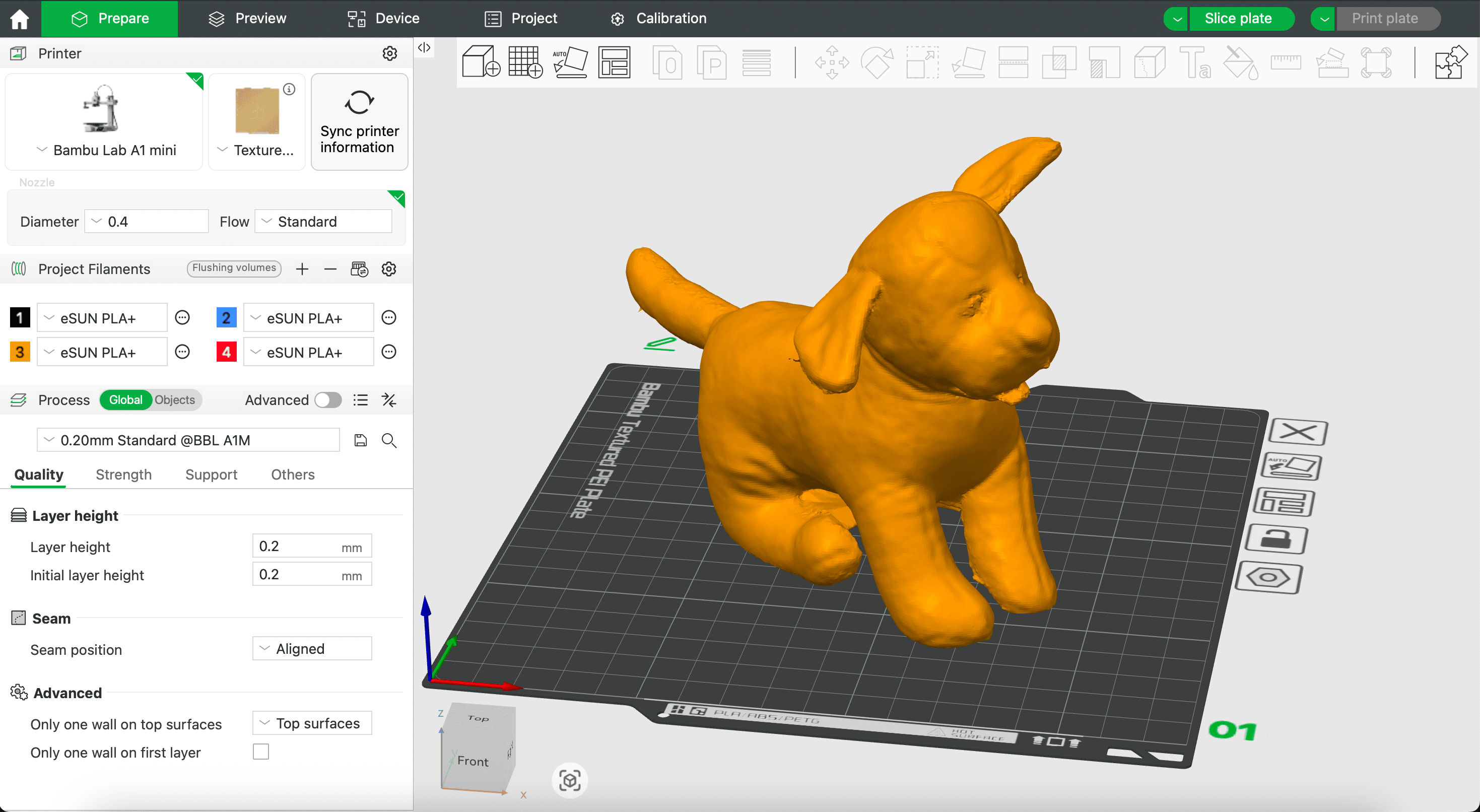 Here is the Bambu software interface, showing the slicing to see the interior of the print..