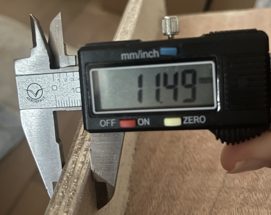 Finally, here is picture of how we measured the wood to get that measurement. Actually the wood was not uniformly thick, so we measured in about 10 places and took the average.