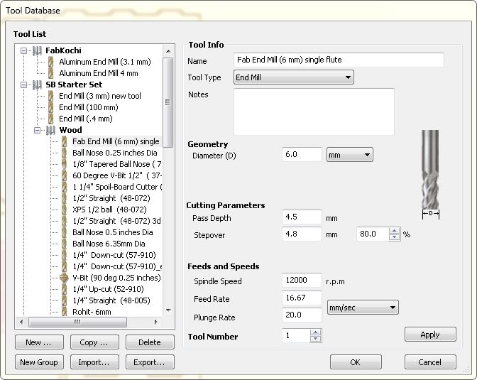 Lots of options for tools (drill bits), but we will use a 6mm single flute.