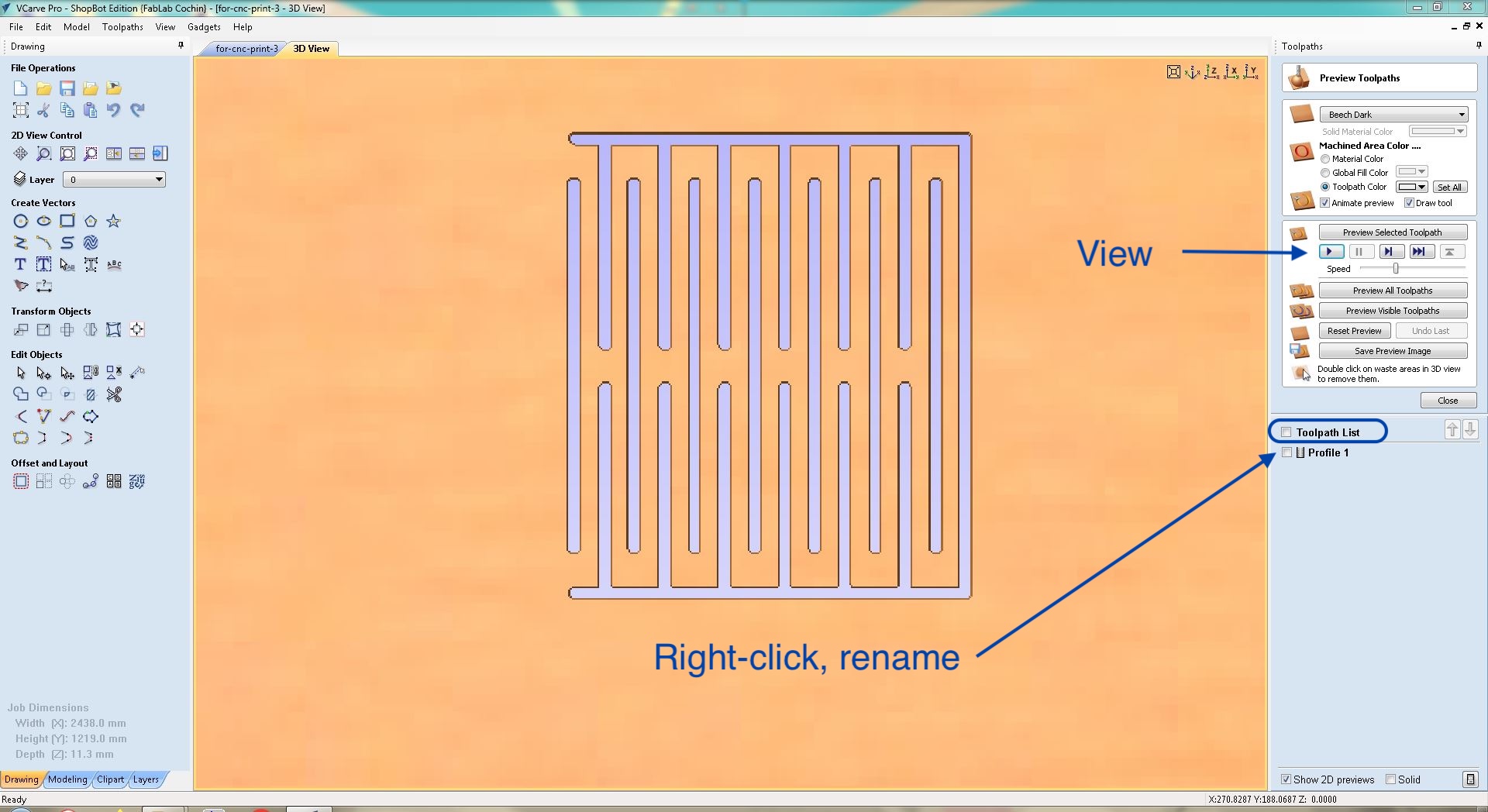 Now the first toolpath is complete. If we like we may both view it as well as rename it.